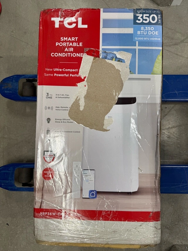 Stay cool the smart way with the powerful cooling capacity of the TCL 12,000 BTU ASHRAE Smart Portable Air Conditioner featuring a fan and dehumidifier mode. The fan circulates air while the AC helps you easily adjust and manage temperatures in rooms up to 325 sq. ft. Additionally, the dehumidifier function helps to reduce moisture in your home. The user-friendly app lets you control your unit from anywhere, change the temperature, set schedules, and more. When paired with Alexa or Google Assistant, you can use simple voice commands to control your portable AC. The washable and reusable filter helps protect the life of your portable AC while also reducing large airborne particles like dust and pet hair. Setup is made easy with the included installation kit and guided in-app instructions that will have your unit up and running in minutes. The two handles and four wheels make this portable air conditioner easy to glide from room to room, keeping you cool wherever you go. Fan, dehumidifier and air conditioner all in one Cools up to 325 sq. ft Pairs with TCL app, Alexa & Google Assistant Washable and reusable filter