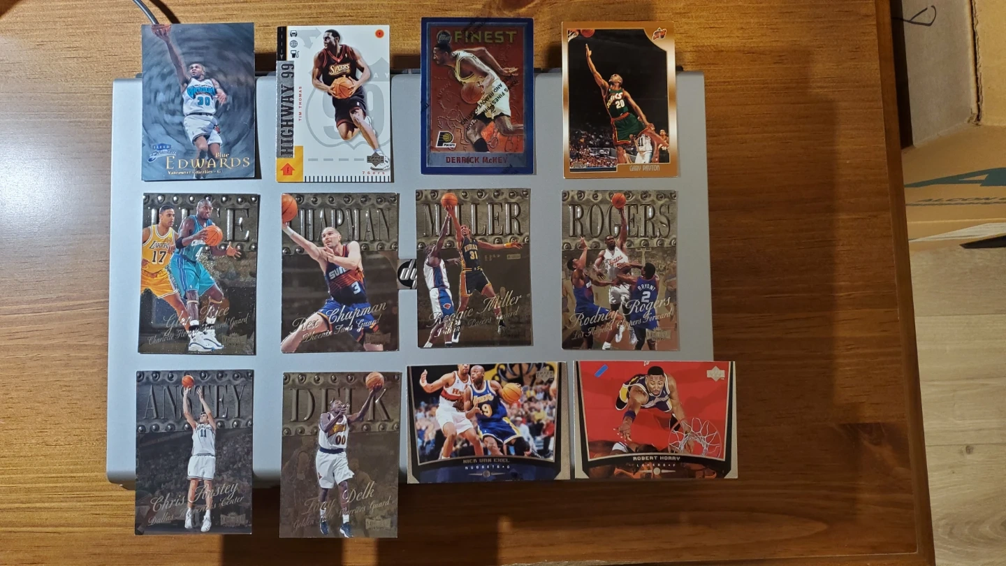 This lot includes a variety of basketball and hockey trading cards featuring NBA and NHL players. Cards are from various sets and brands. Most appear to be from the 1990s and early 2000s. Selling for $55 but open to offers and if you are interested in a specific card message me.