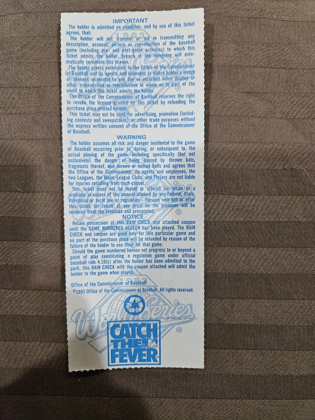 MINT CONDITION! 1993 World Series Toronto Blue Jays Ticket stubs