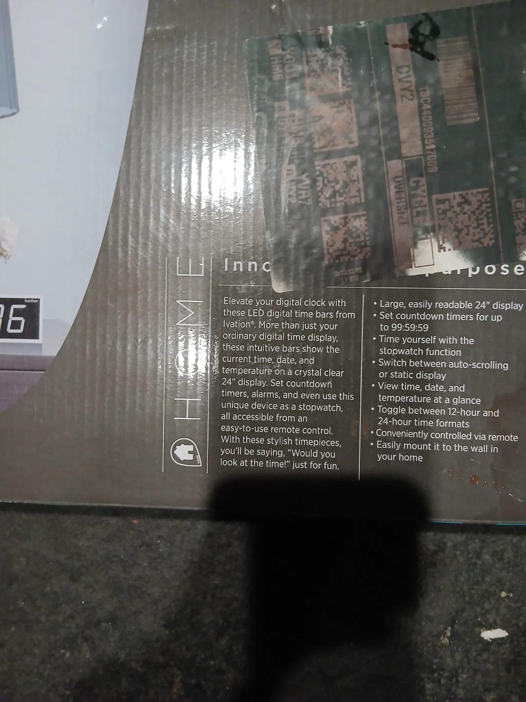 Selling a brand new Ivation 24" LED Digital Time Bar with Timers, still in its original packaging! This innovative digital clock displays the current time, date, and temperature on a crystal clear LED display. You can also set countdown timers and use it as a stopwatch. It's easily controlled via remote and can be mounted on the wall in your home