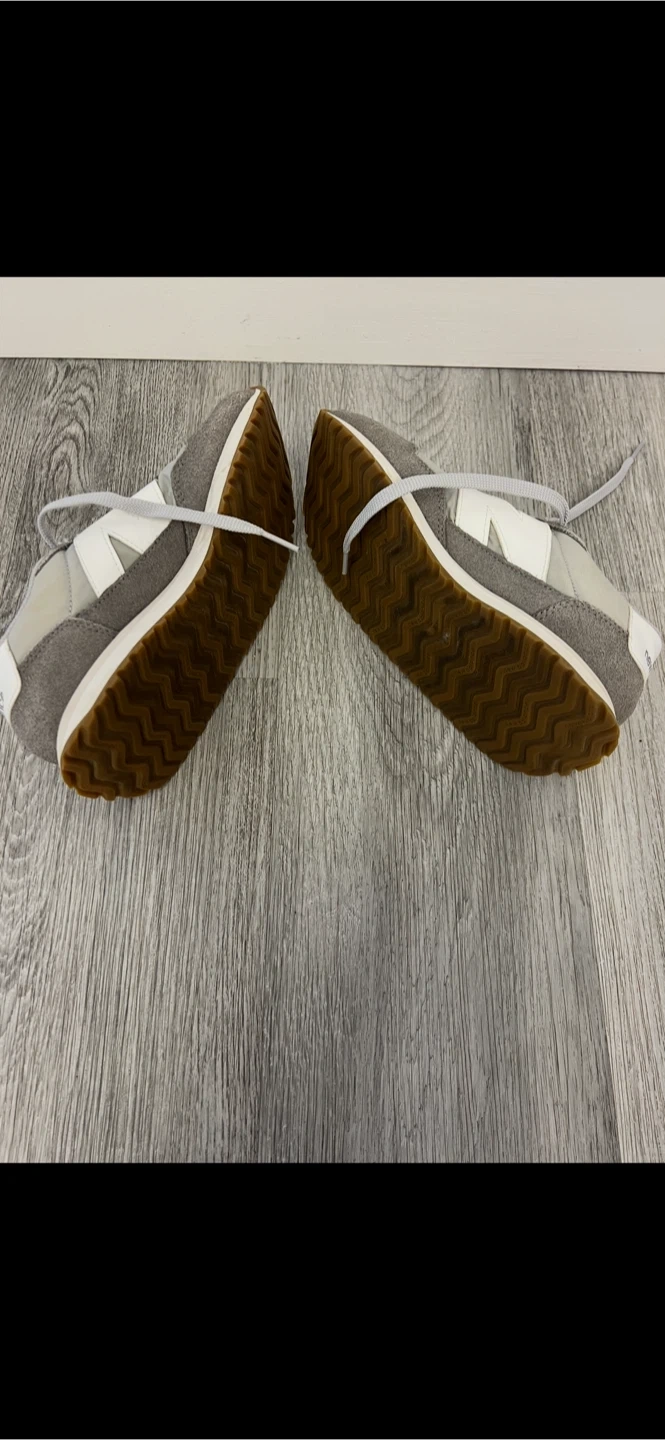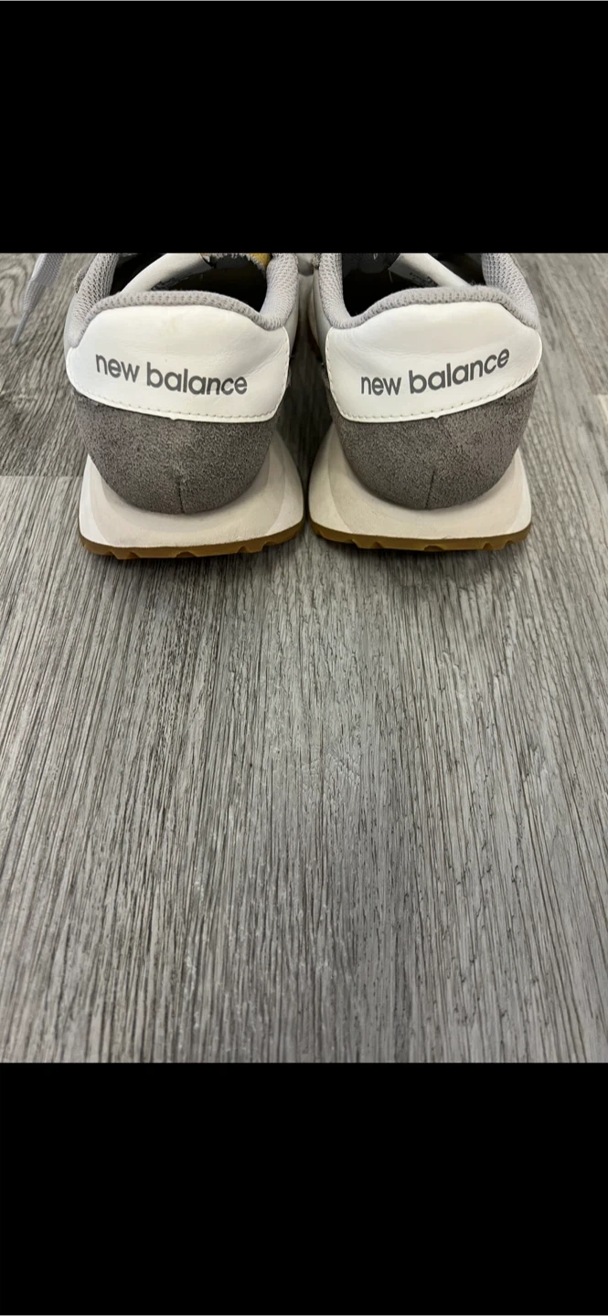These New Balance 237 sneakers are grey and white. They have a suede and mesh upper. The rubber outsole provides good grip.