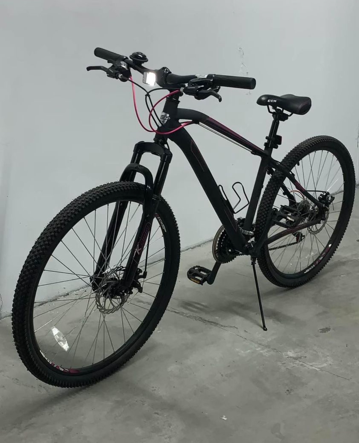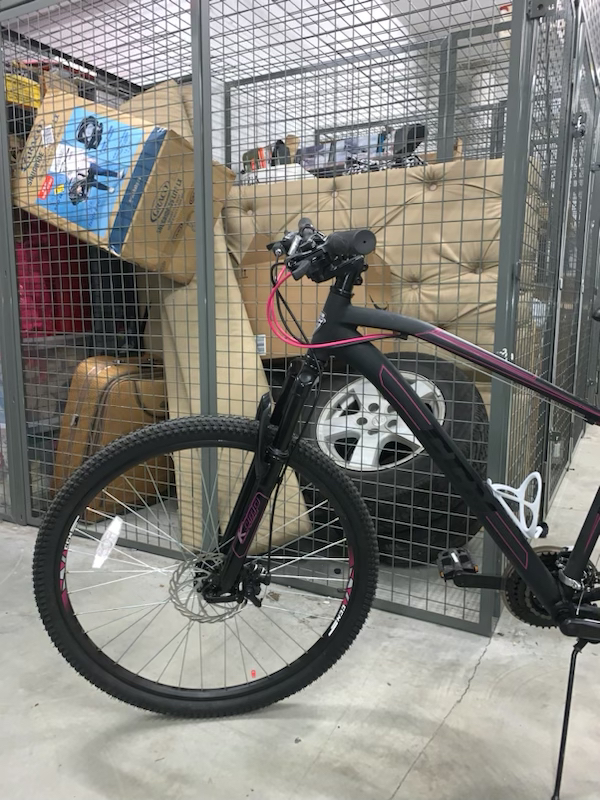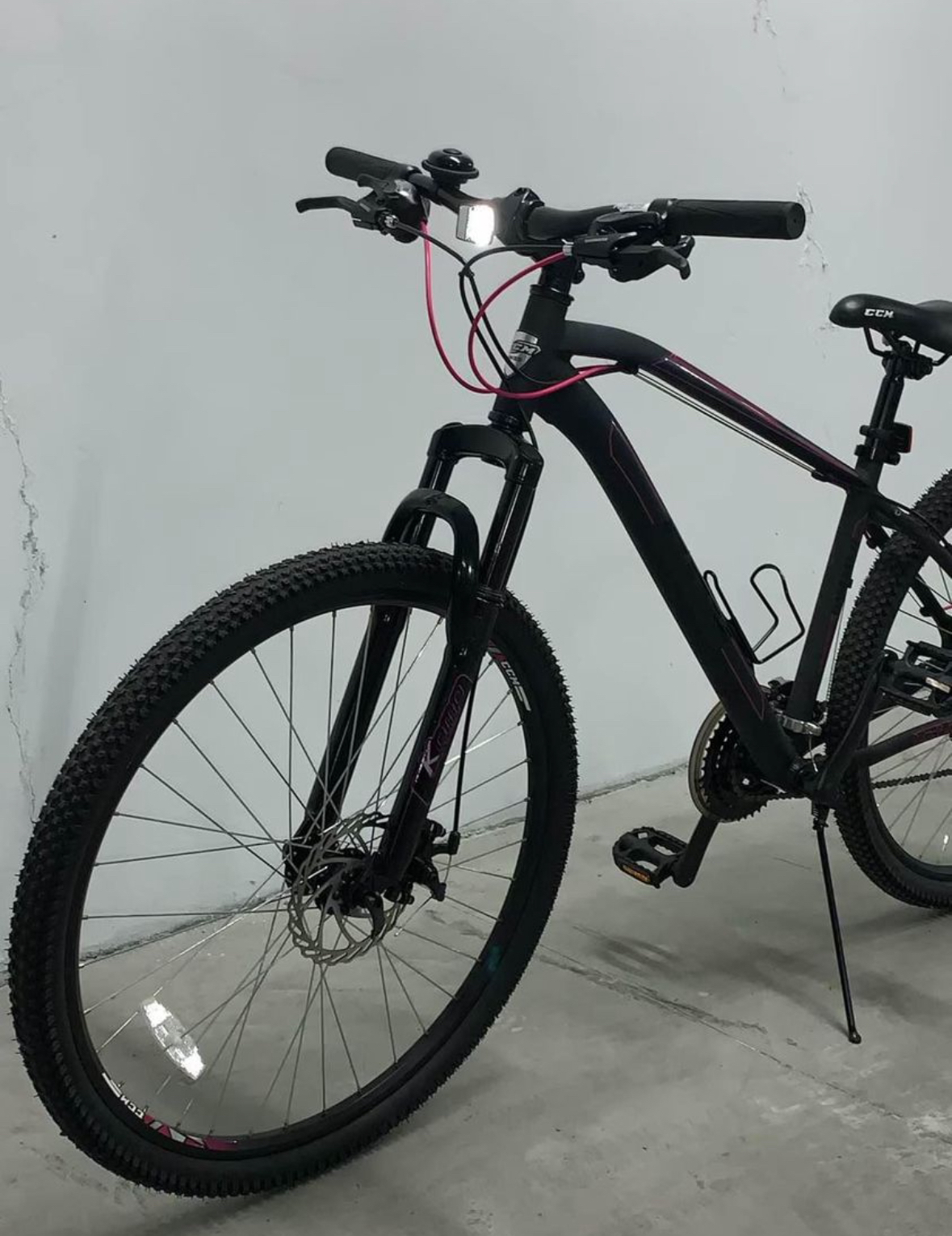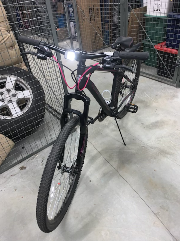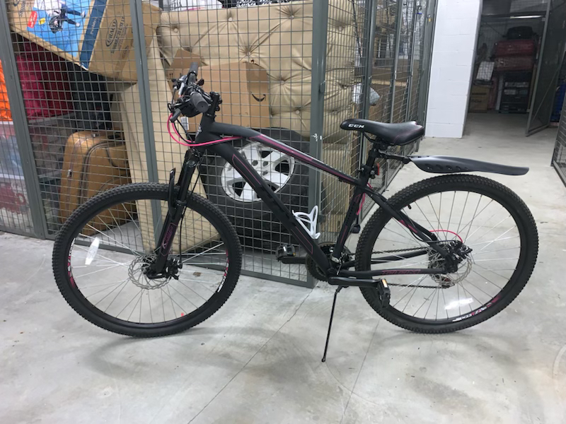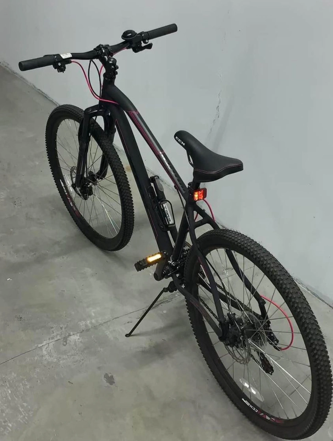 CCM FS Dimmer Hardtail Mountain Bike, 21-Speed, 27.5-in, Black/Purple Brand new bike; rode only a couple times but, frame style doesn’t suit me as I am short and the middle bar is to high when dismounting. Bike info: The CCM Dimmer 27.5” hardtail mountain bike makes it easy to enjoy biking on trails or back roads. It’s equipped with features like the Shimano EZ fire shifting system with Shimano derailleurs which will ensure you have a great riding experience. The 2.1" tires paired with double-wall rims make for strong wheels that can handle the rough terrain ahead. Add the lightweight aluminum frame with alloy crank, and you have a quality bike that's ready for action. • CCM FS Dimmer Women's Hardtail Mountain Bike features a 6061 aluminum sloping frame with trail-ready geometry • 27.5\" (70 cm) wheels • 21-speed Shimano EZ-Fire shifting system with Shimano derailleurs • Alloy crank • Disc brakes Retail at Canadian tire for $674.99