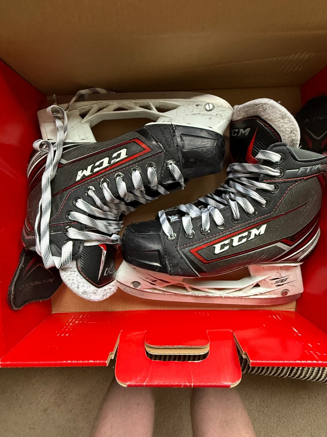 Selling a pair of CCM FT370 ice hockey skates in size 6.5 US. These skates show signs of use, but are still in good condition for hitting the ice. They come in the original box, ready for a new owner to enjoy!