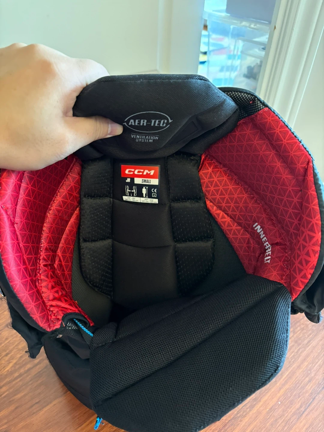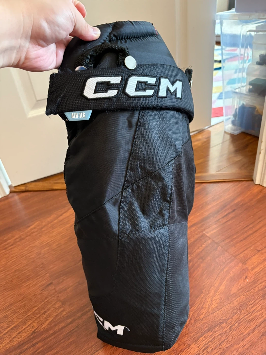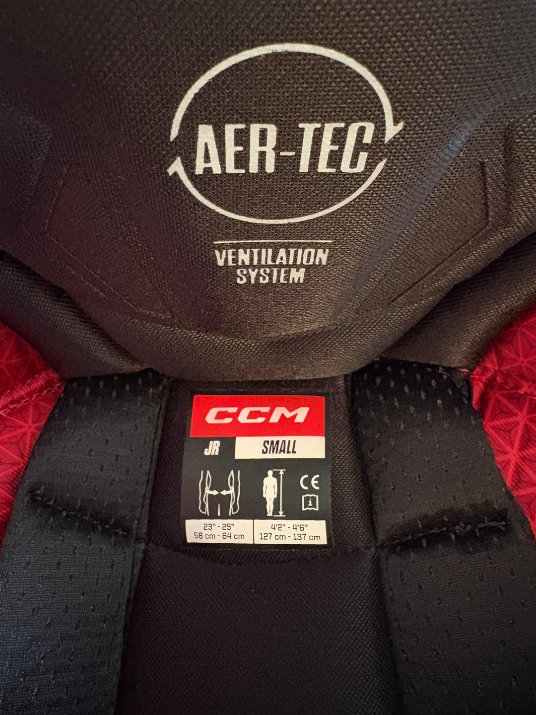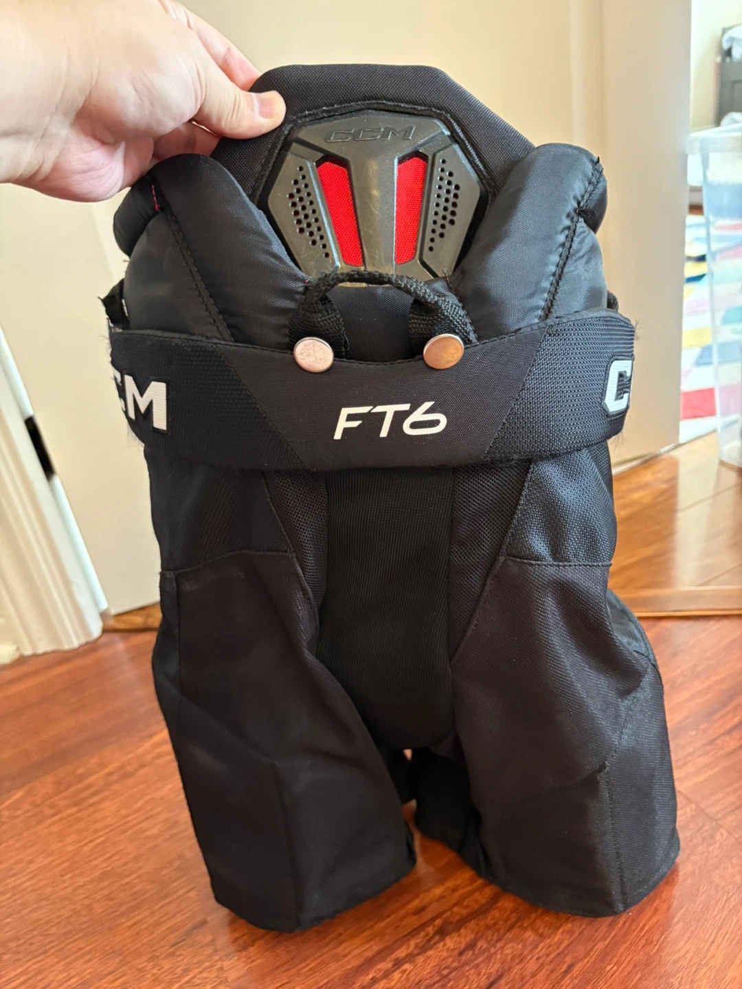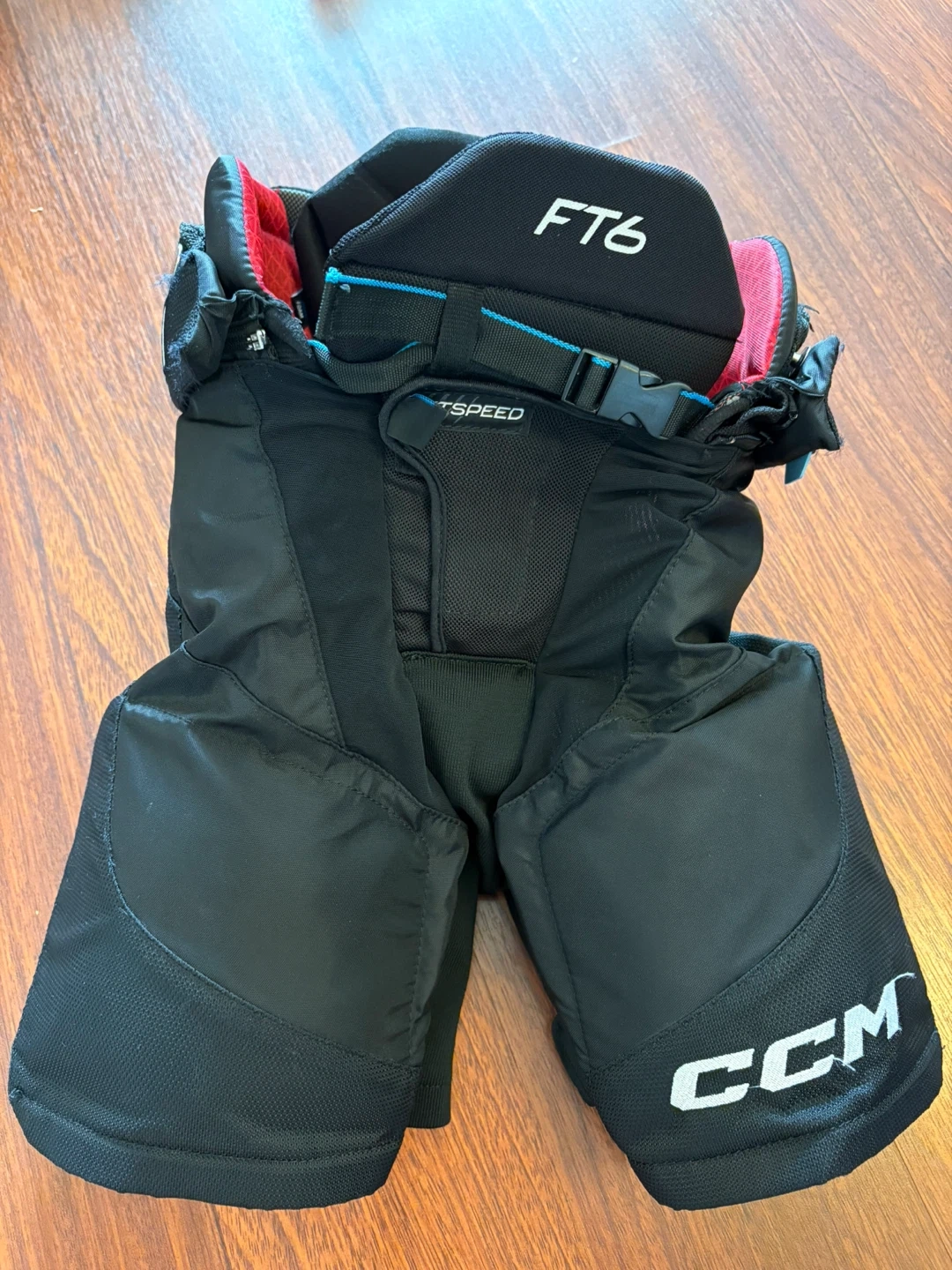 Selling a pair of CCM FT6 hockey pants in size JR small. They're in great shape and ready for the rink! The pants are black with red interior padding, and feature AER-TEC ventilation system.