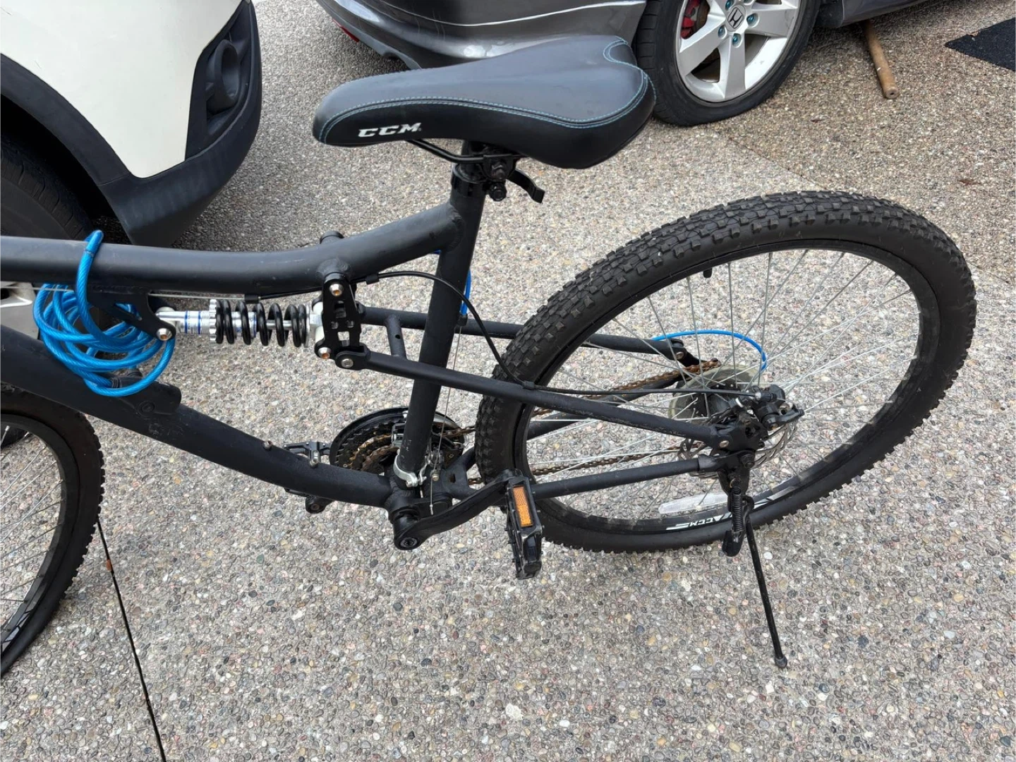 Selling a CCM mountain bike in black. It's in good condition and ready for some trails or just cruising around the neighbourhood
