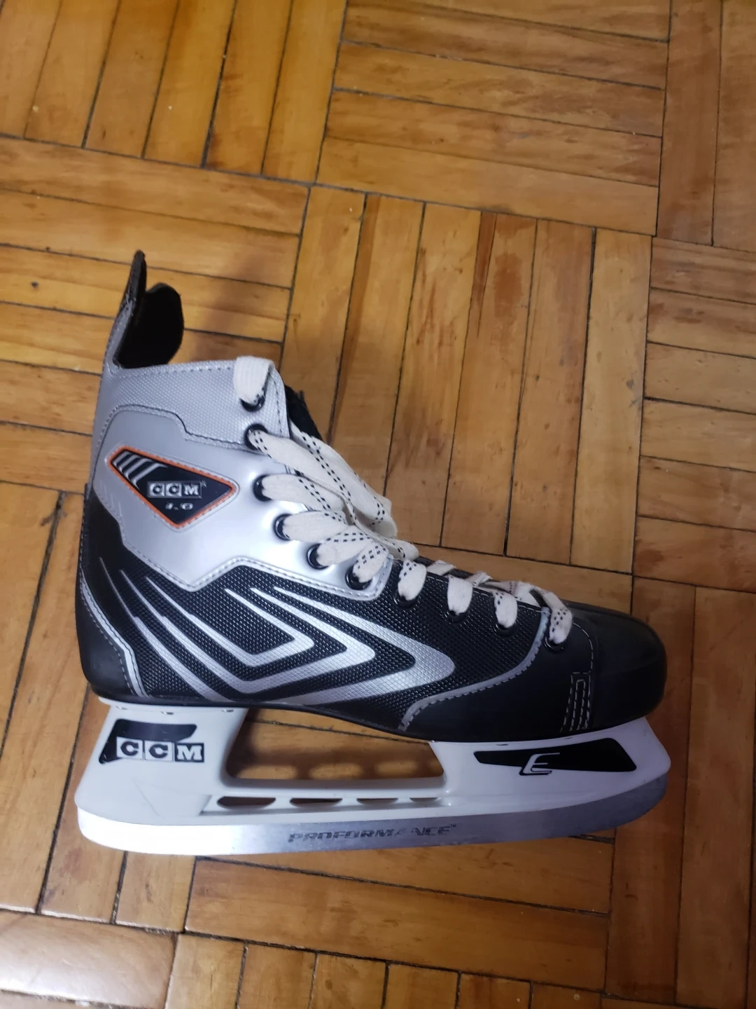 Used CCM Proform Ace ice skates. Size 10. Good condition. Black and grey colour scheme. Lace-up closure. Ready for the ice!