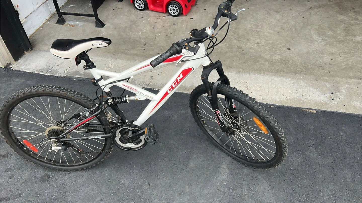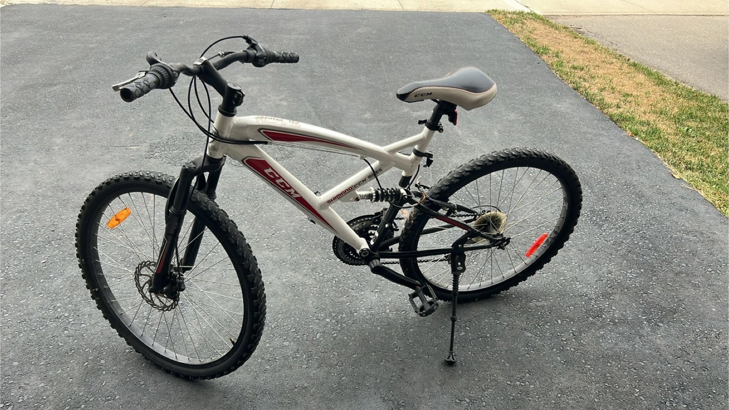 Selling a CCM mountain bike. It features Shimano gears and a suspension fork for a smoother ride. Perfect for hitting the trails or cruising around the neighbourhood!