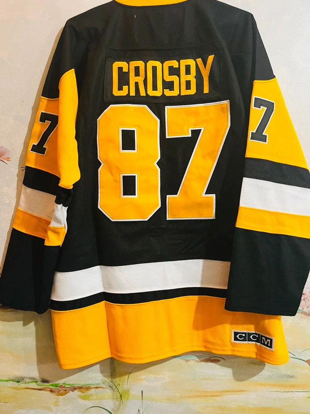 86Get your hands on this brand new CCM Sidney Crosby Pittsburgh Penguins Jersey, showcasing the iconic number 87, in size 56! The jersey captures the spirit of the game with its vibrant colours and design. Key Features: - Team: Pittsburgh Penguins - Player: Sidney Crosby - Number: 87 - Size: 56 - Brand: CCM Pick up is in Brampton near Sheridan College at Blue Bonnet Drive