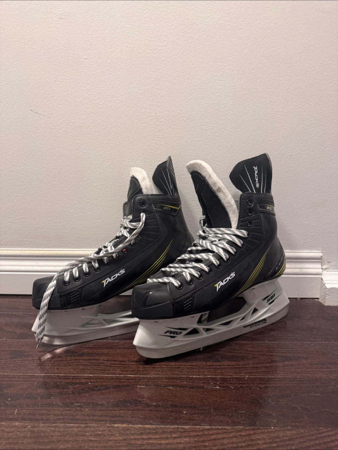 CCM Tacks AS1 hockey skates. Size 11D. Black with yellow accents. Used condition. Made in China.