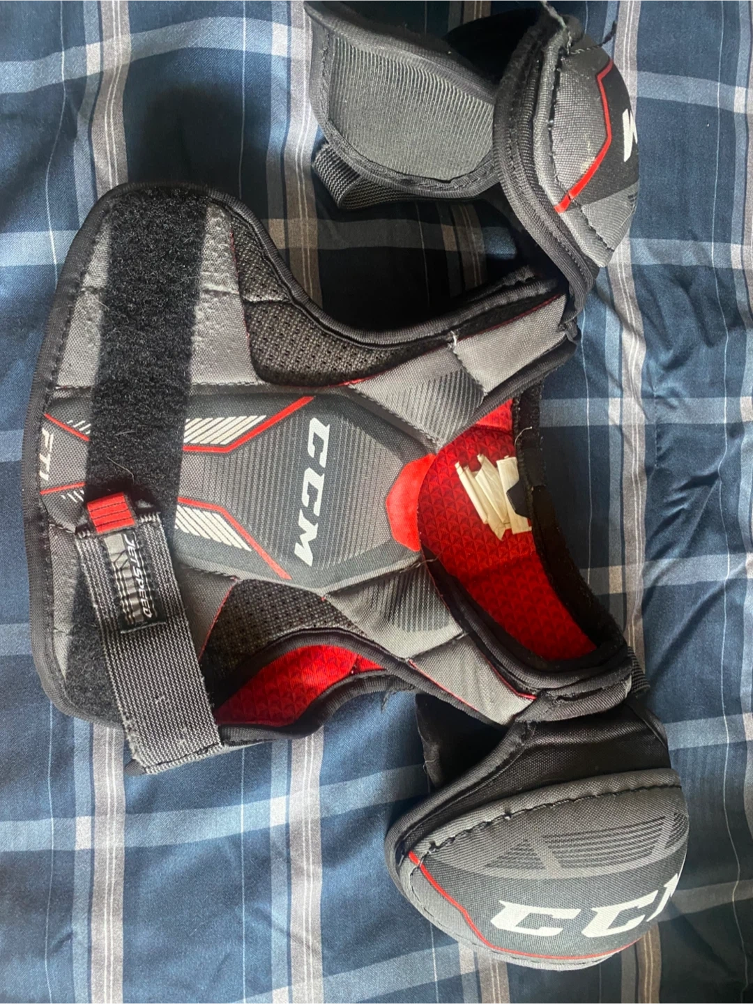 Selling a set of youth hockey gear from CCM. Includes gloves, pants, and shoulder pads. The pants are size YTH Large. Great for getting started! Pants $20, chest/shoulder pads, $15 and gloves $20
