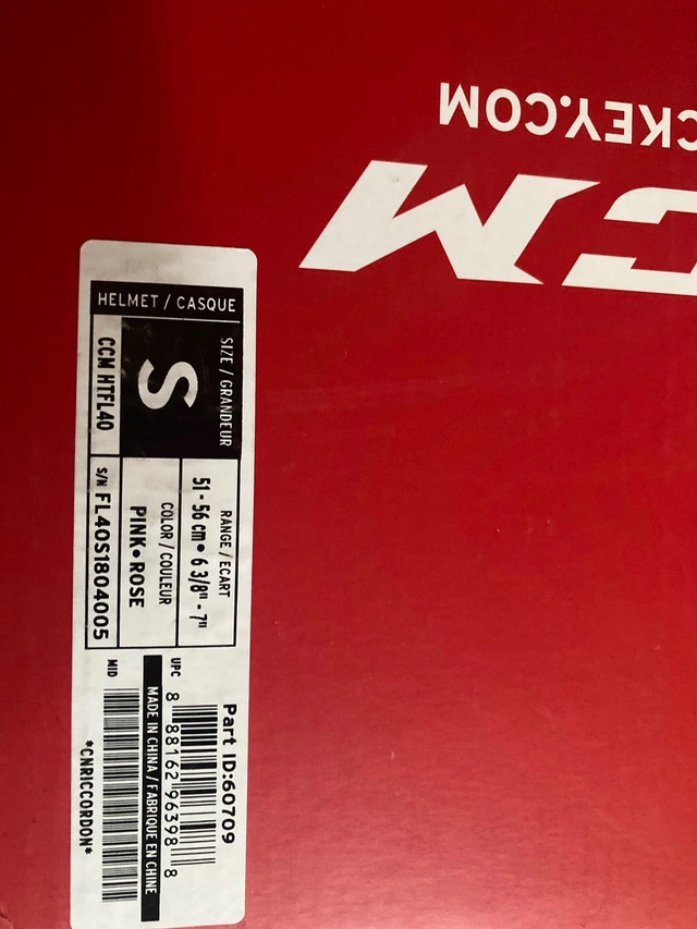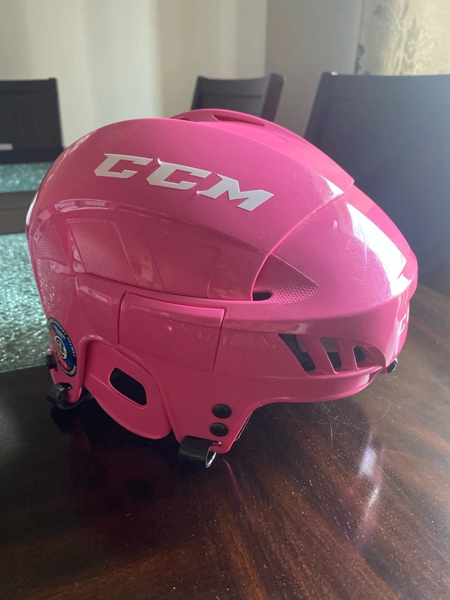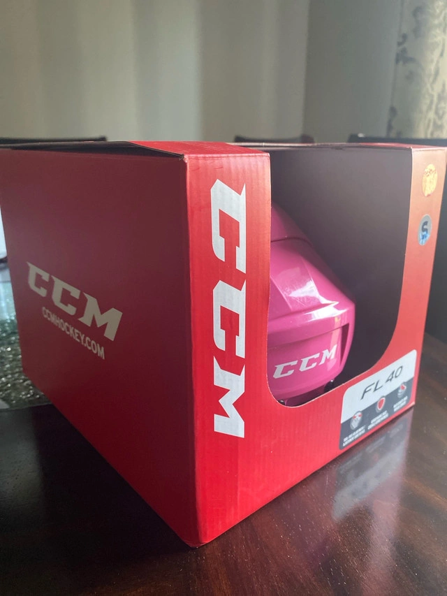 15CCM50 FL 40 Hockey Helmet Pink/Rose Size Small Dimensions: 51-56 cm (6 3/8ths - 7 inches) - Tool-Free Adjustment - Aerodynamic Sheel - Multi Density Liner Used - Fair Condition - Opened box PICKUP & CASH ONLY Negotiable if fair