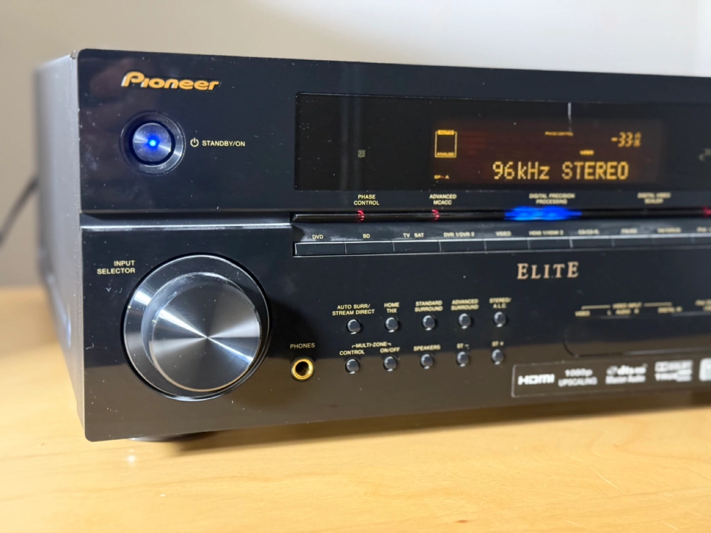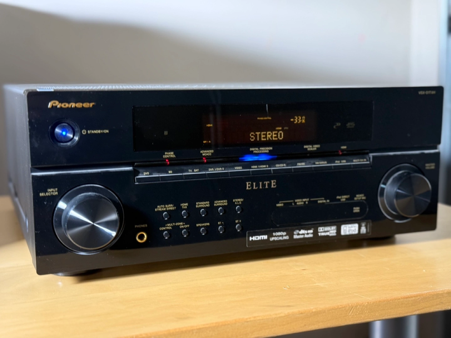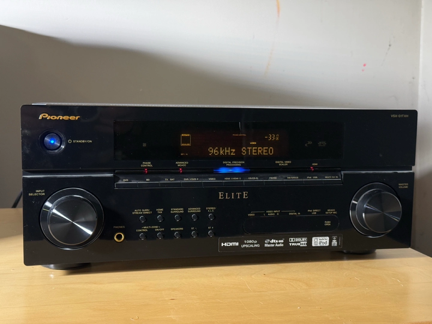Set your sights on the Elite VSX-01TXH 7.1-channel receiver and experience a home theater command center unlike anything you've ever imagined before. With unprecedented audio and video performance from this incredible multi-channel surround sound receiver, enter a dimension of sight and sound.Brace yourself for 110 Watts x 7 of high-power direct energy amplification for big, bold beautiful sound. Awaken your senses to high-definition home-theater surround sound from Dolby TrueHD and DTS-HD master audio decoders, processed with THX Select2 Plus Processing and Certification. Discover a world designed with optimal sound tuning capabilities from Pioneer's innovative Advanced MCACC room calibration and Phase Control technology to ensure the audio arrives at your listening position in complete synchronization.Enjoy your digital music like never before with iPod digital USB, USB memory audio playback, and both XM and SIRIUS satellite radio ready inputs; all fully integrated, ready and waiting for you to turn them on. And now access to all your devices can be easily set up and the devices controlled using an on-screen display and a multi-zone remote control.Enter a realm beyond imagination with a receiver that is fully custom-installation-ready and offers a discrete 2 Room Multi-zone A/V output plus independent zone control from a remote that enables you to enjoy all of your A/V entertainment throughout your home.Discover a receiver that delivers audio and video so rich, so pure, so powerful and so completely different - how you think about home entertainment will be forever changed.