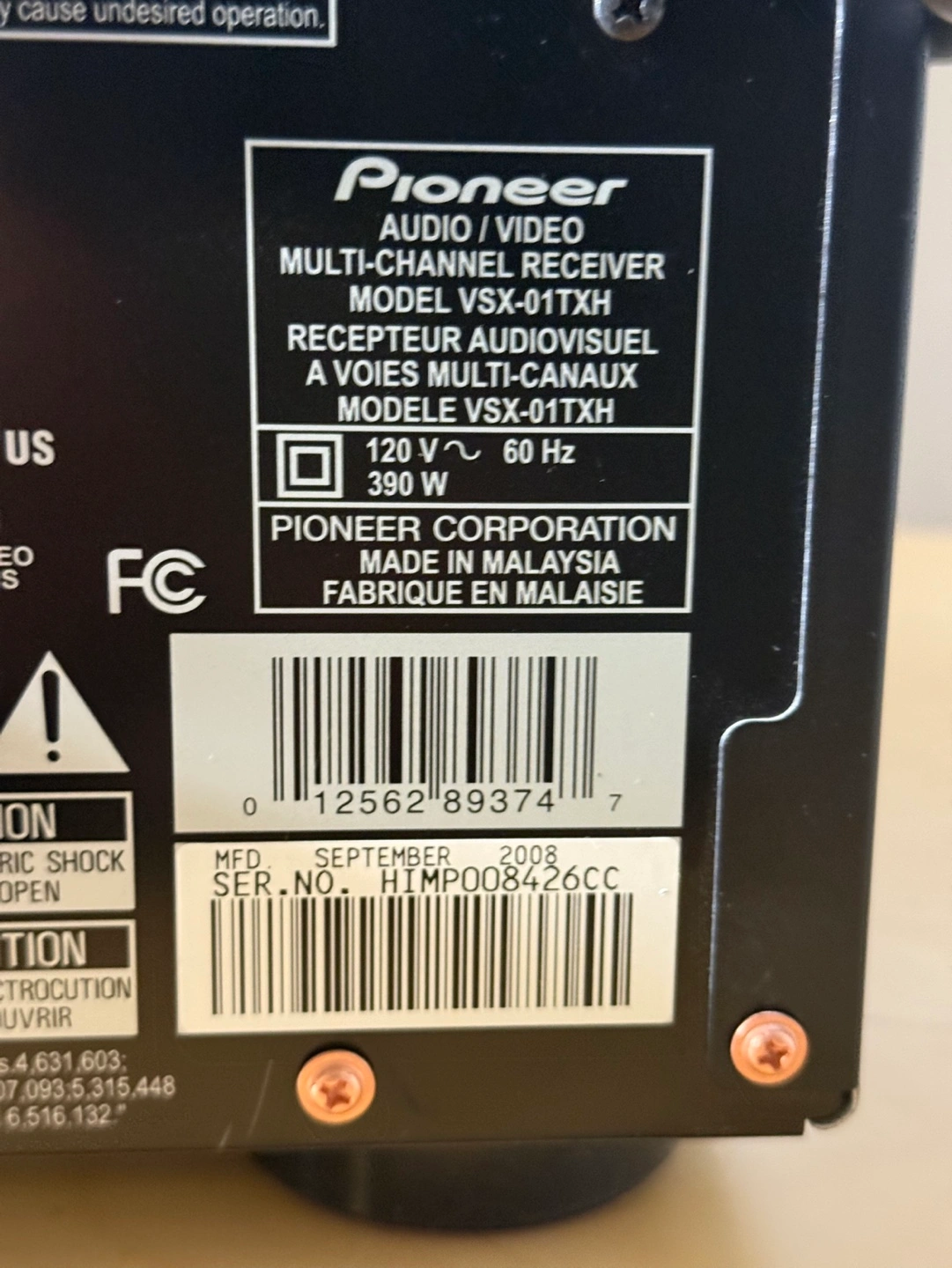 Pioneer VSX-01TXH Audio/Video Home Theater Receiver