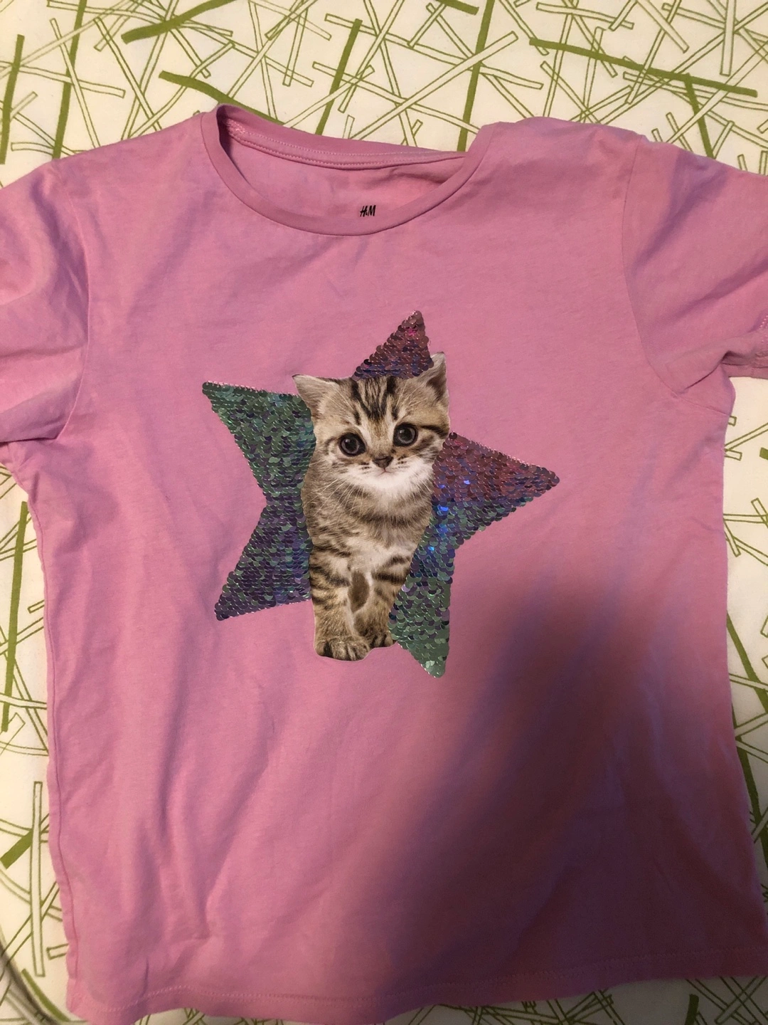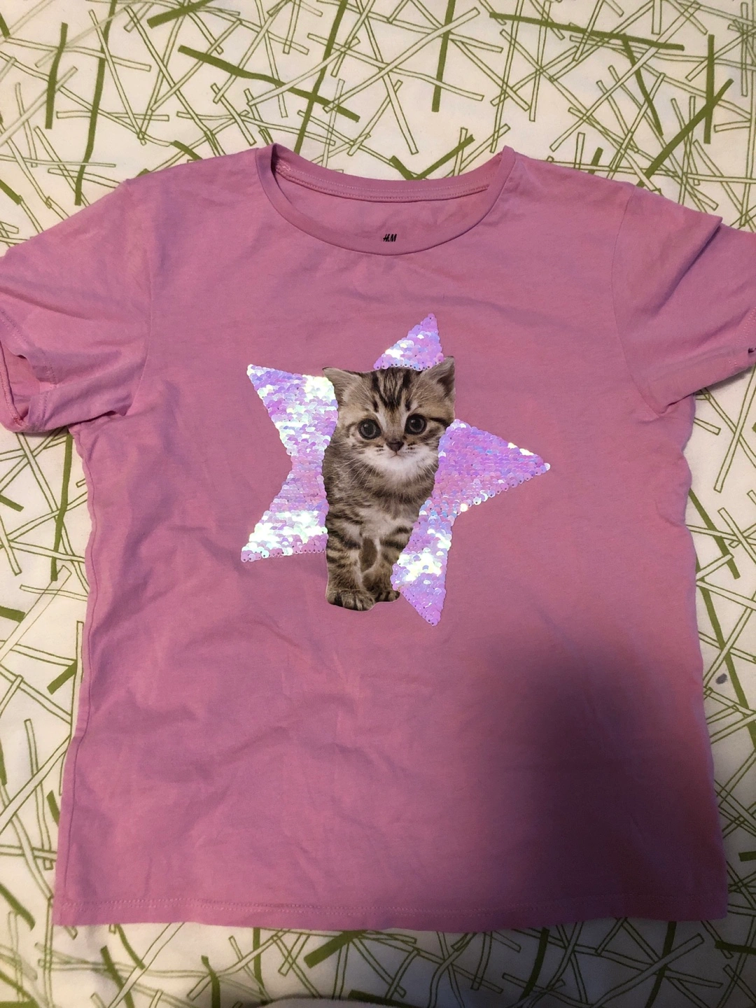 Adorable lilac t-shirt. Features a kitten in a sparkly star. Size 8-10. Short sleeves. Great for spring or summer.