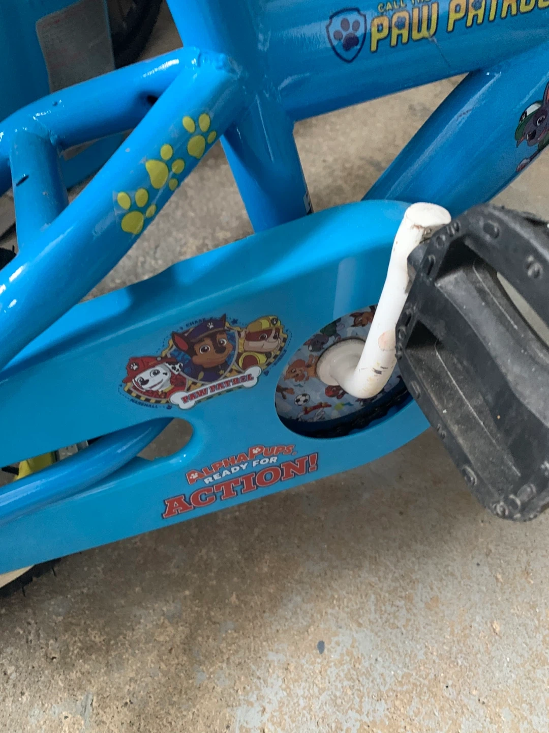This bright blue Paw Patrol bike is ready for action! It features Paw Patrol graphics and comes with training wheels for beginners. Perfect for little adventurers learning to ride.