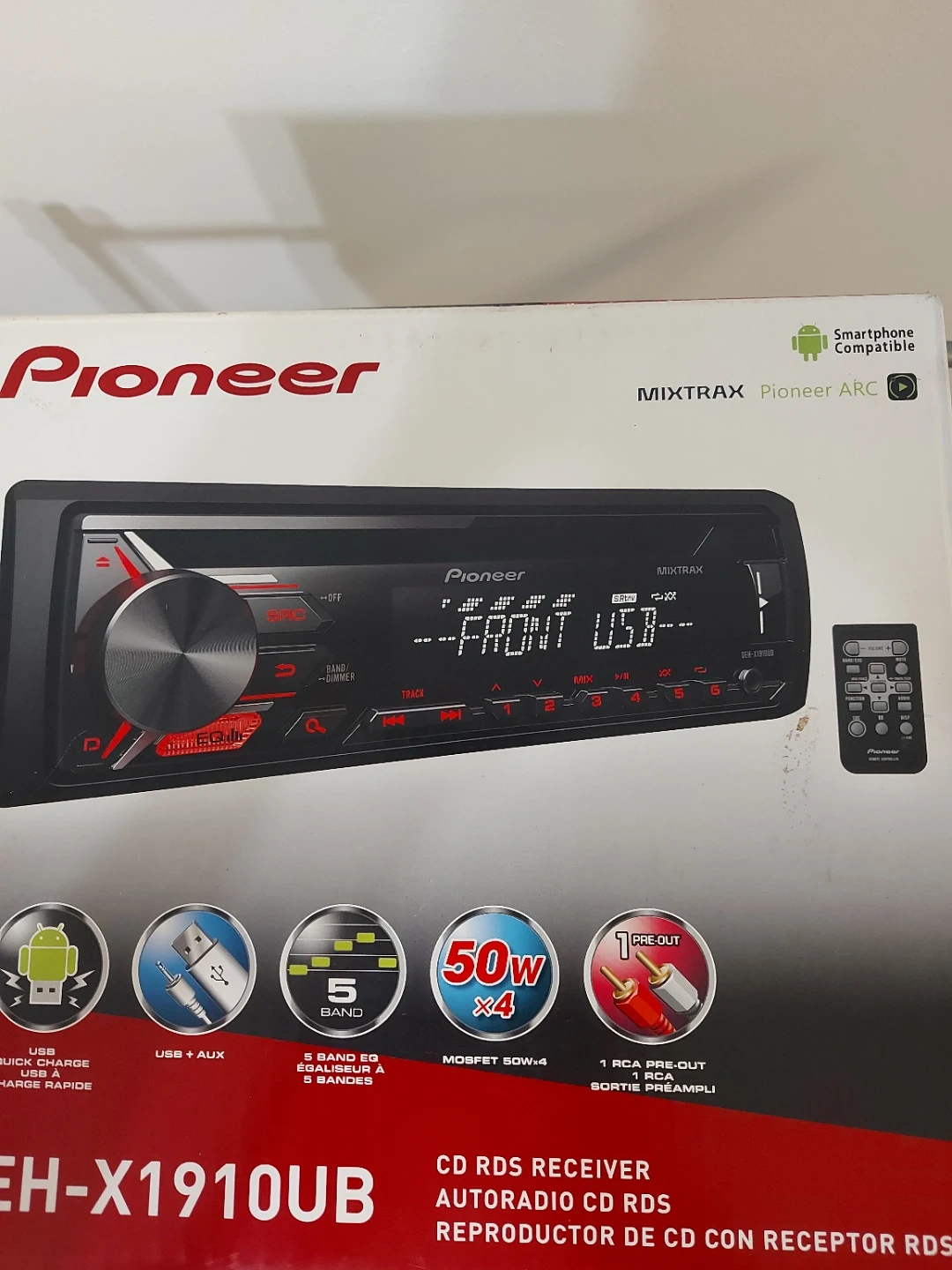 This never used Pioneer CD RDS receiver has MIXTRAX and is Smartphone compatible. Remote included.