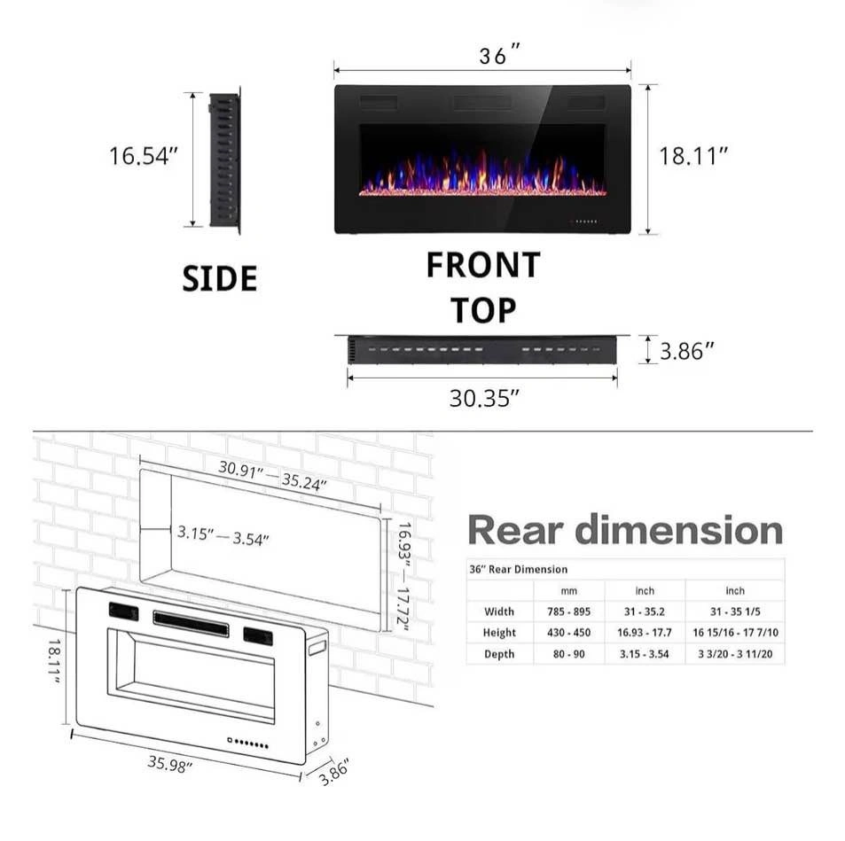 R.W.FLAME 36” Electric Fireplace – Wall Mounted / Recessed – Mod