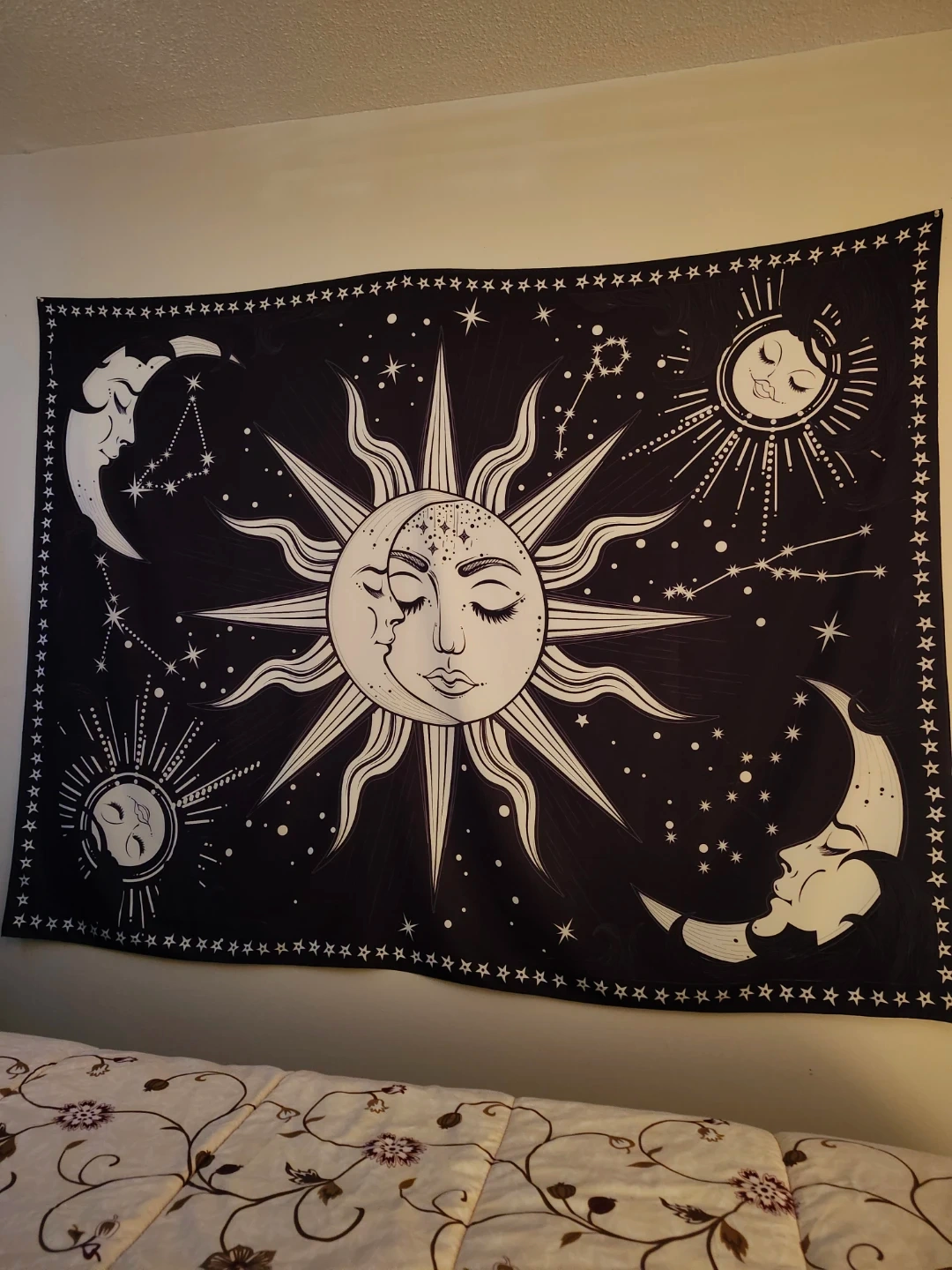 Add a touch of celestial charm to your space with this sun and moon tapestry! This unique wall hanging features a captivating design with stars and constellations, perfect for adding a mystical vibe to any room
