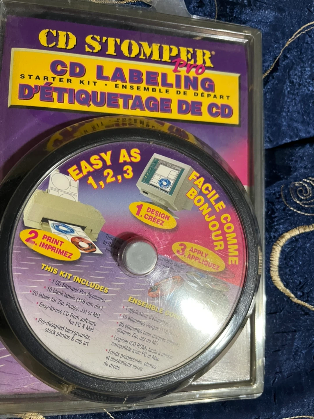 83Get your CDs labeled with the CD Stomper Pro Starter Kit! This kit makes it easy to design, print, and apply labels to your CDs. It includes the CD Stomper Pro applicator, blank labels, and easy-to-use software compatible with PC & Mac. It's easy as 1, 2, 3!