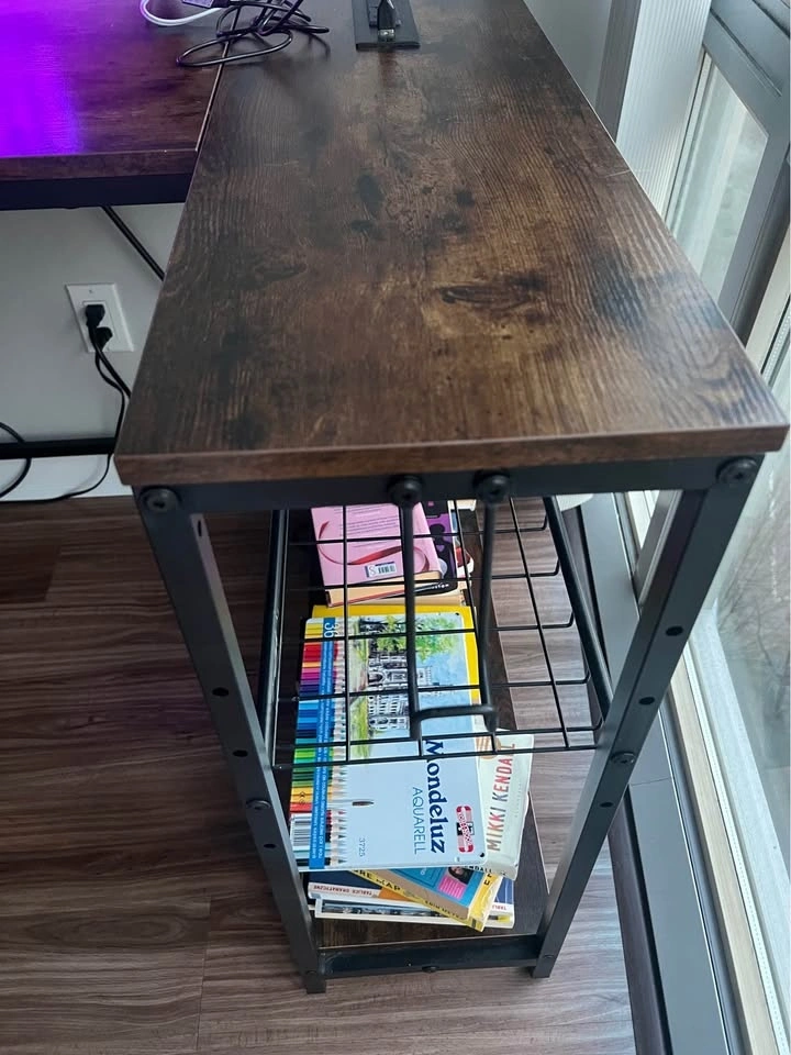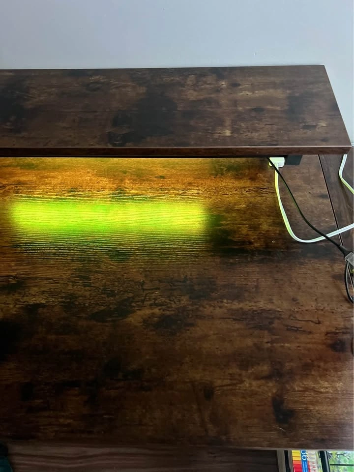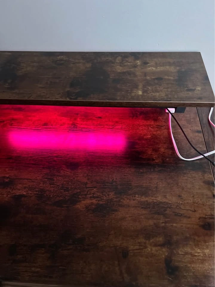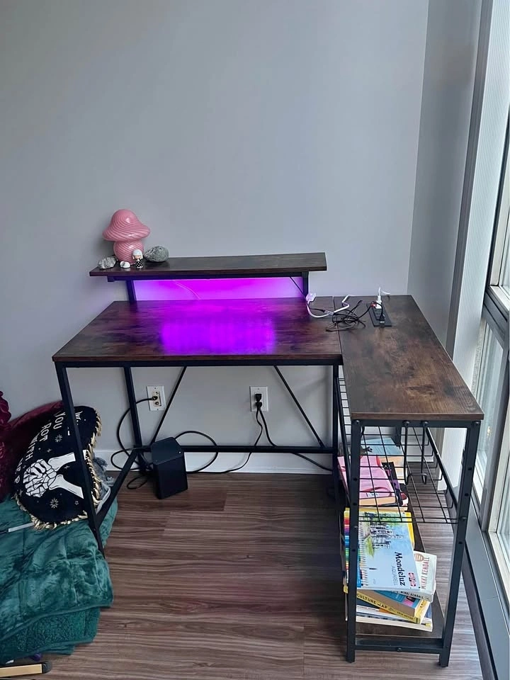 Moving abroad sale. Dimensions: 82D x 106.5W x 91.2H cm. Perfect work or gaming desk for small spaces, built-in LED lights with multiple settings, two storage shelves, monitor stand/top shelf, multiple power outlets including USB, 1 side hook. Pick up Coal Harbour.