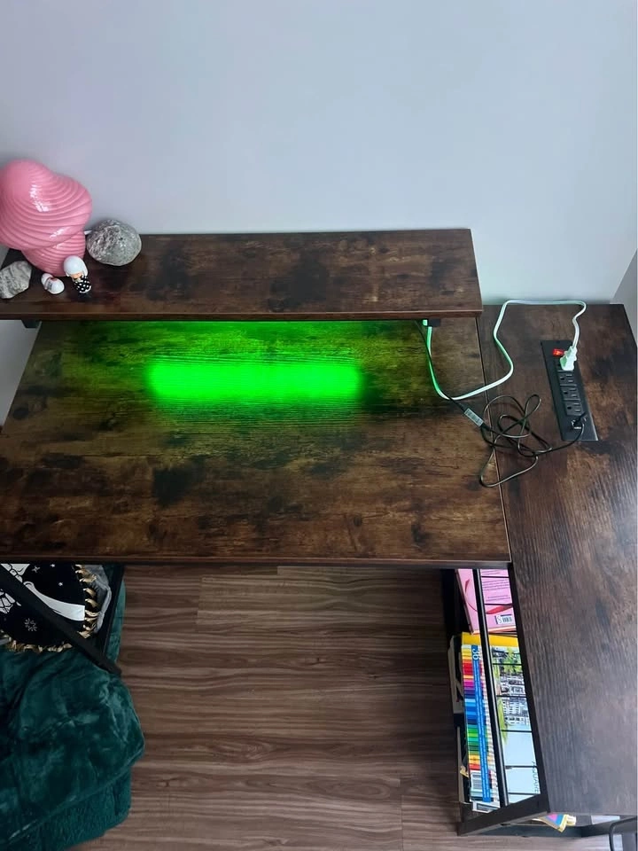L-Shaped Corner Work Desk w/ LED Lights & Storage