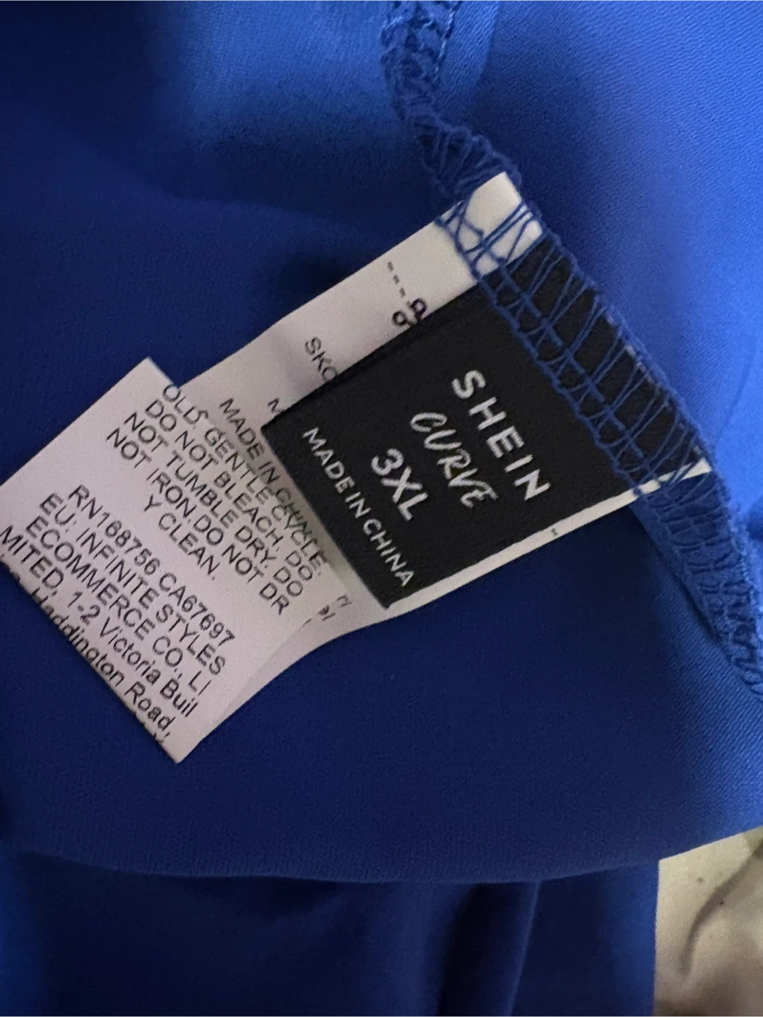 This is a beautiful blue dress from Shein Curve in size 3XL. It features a lovely lace detail on the upper part of the dress. It's in great condition and ready for a new owner!