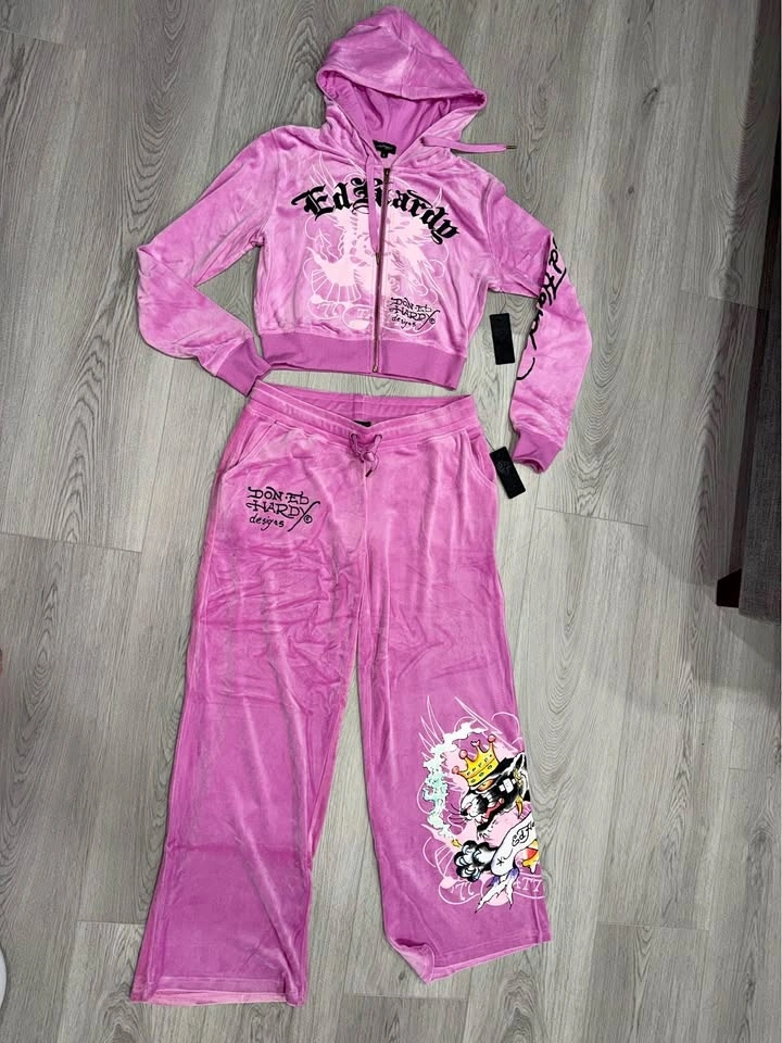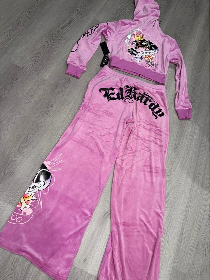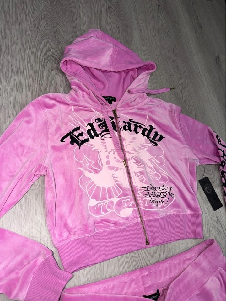 Ed Hardy Pink Hoodie Pants Set Size Large