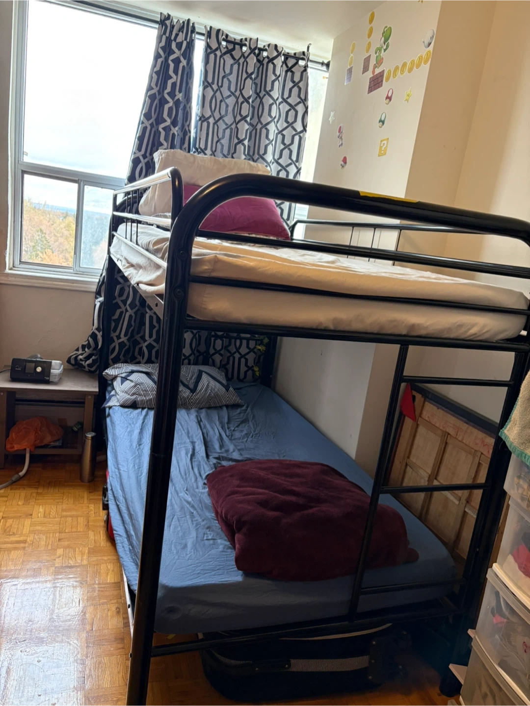 Selling a metal bunk bed frame! It's in great condition and ready for a new home. Perfect for saving space in a smaller room or for accommodating guests
