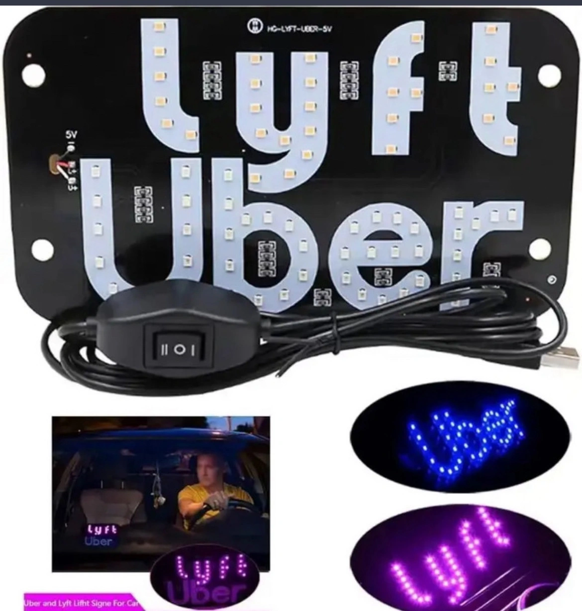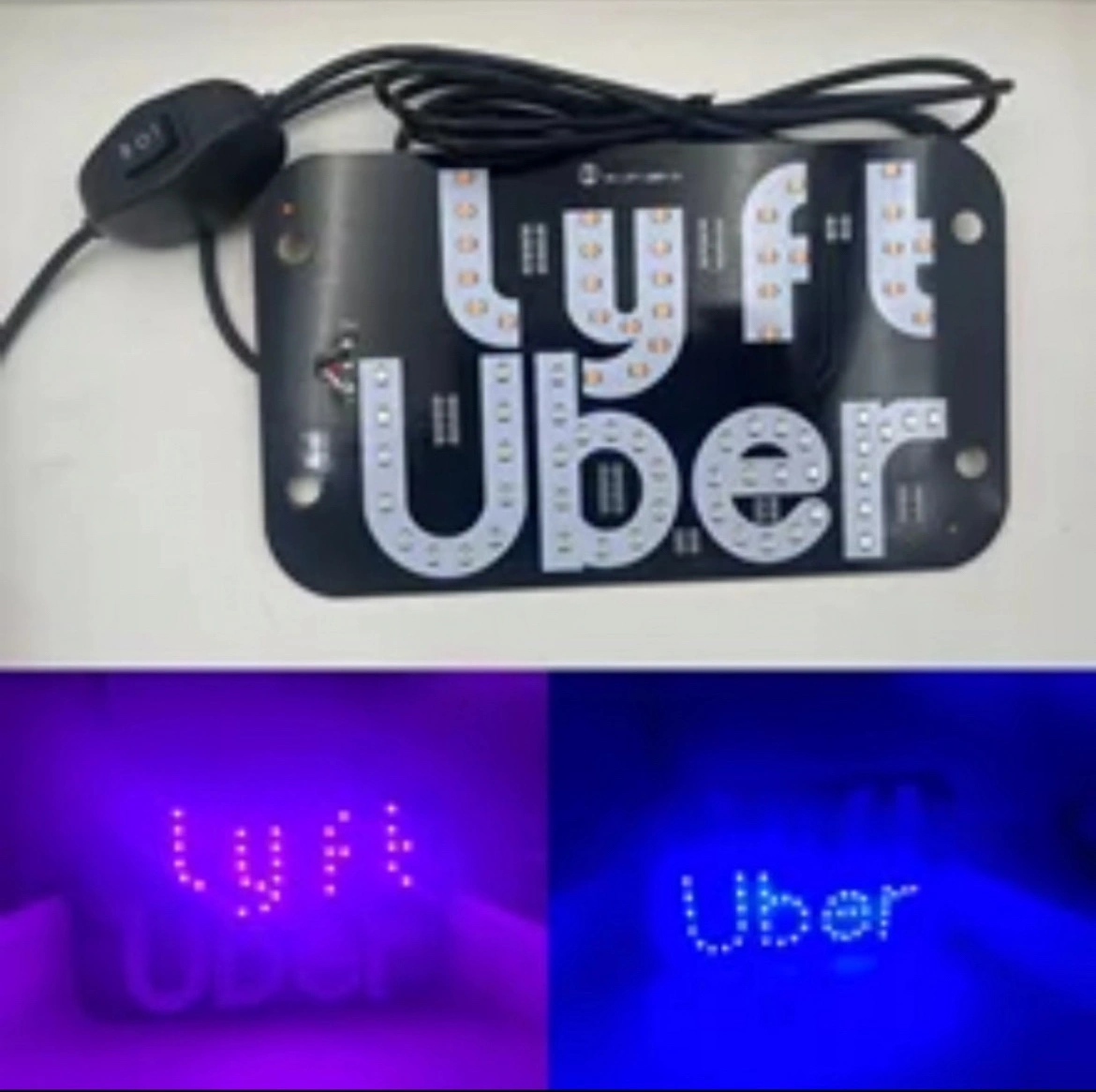 Lyft and Uber Car Sign on 1 Board. Switch on Uber or Lyft when pickup. Very Bright at Dark Night . Very Easy to Locate For Customers in Rainy, Snowy, Windy and Late Dark Night.