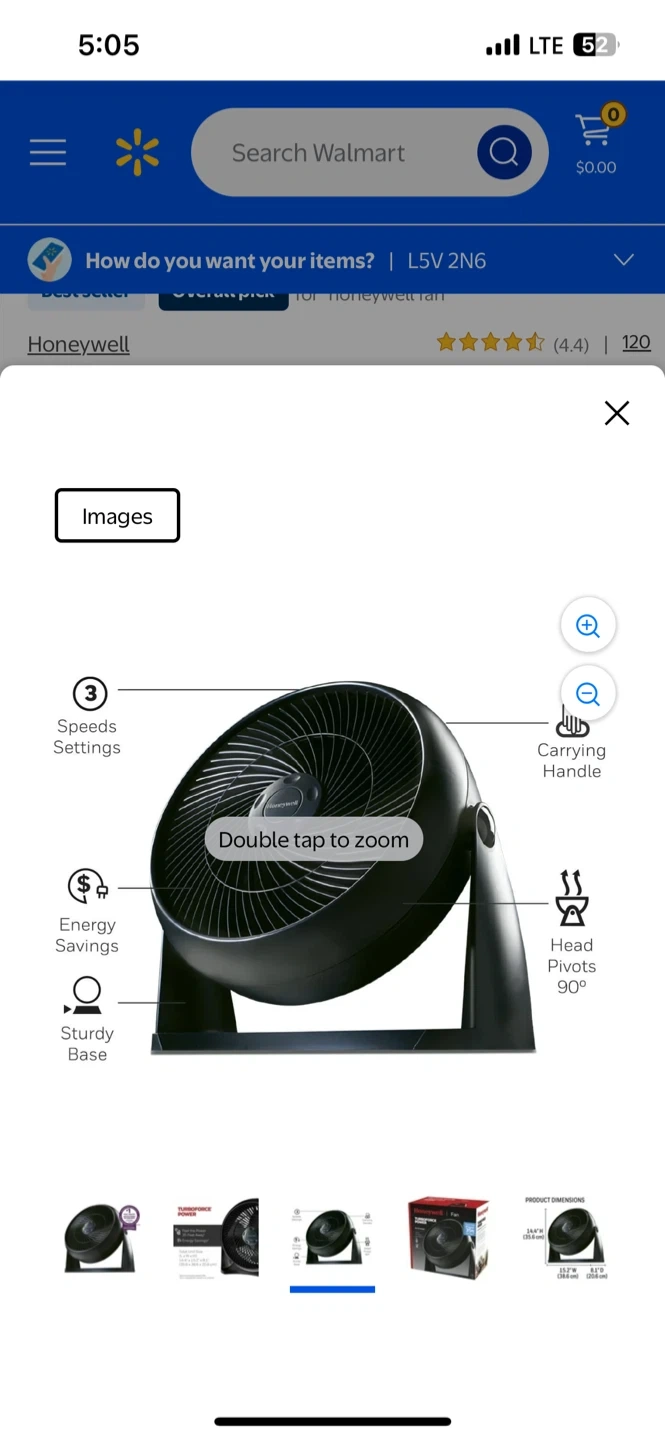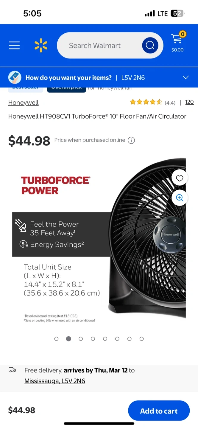Honeywell HT908CV1 TurboForce fan. It circulates air up to 35 feet and has energy savings. Dimensions are 14.4" H x 15.2" W x 8.1" D. Head pivots 90 degrees.
