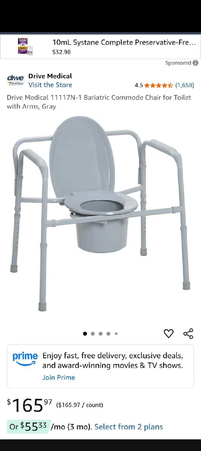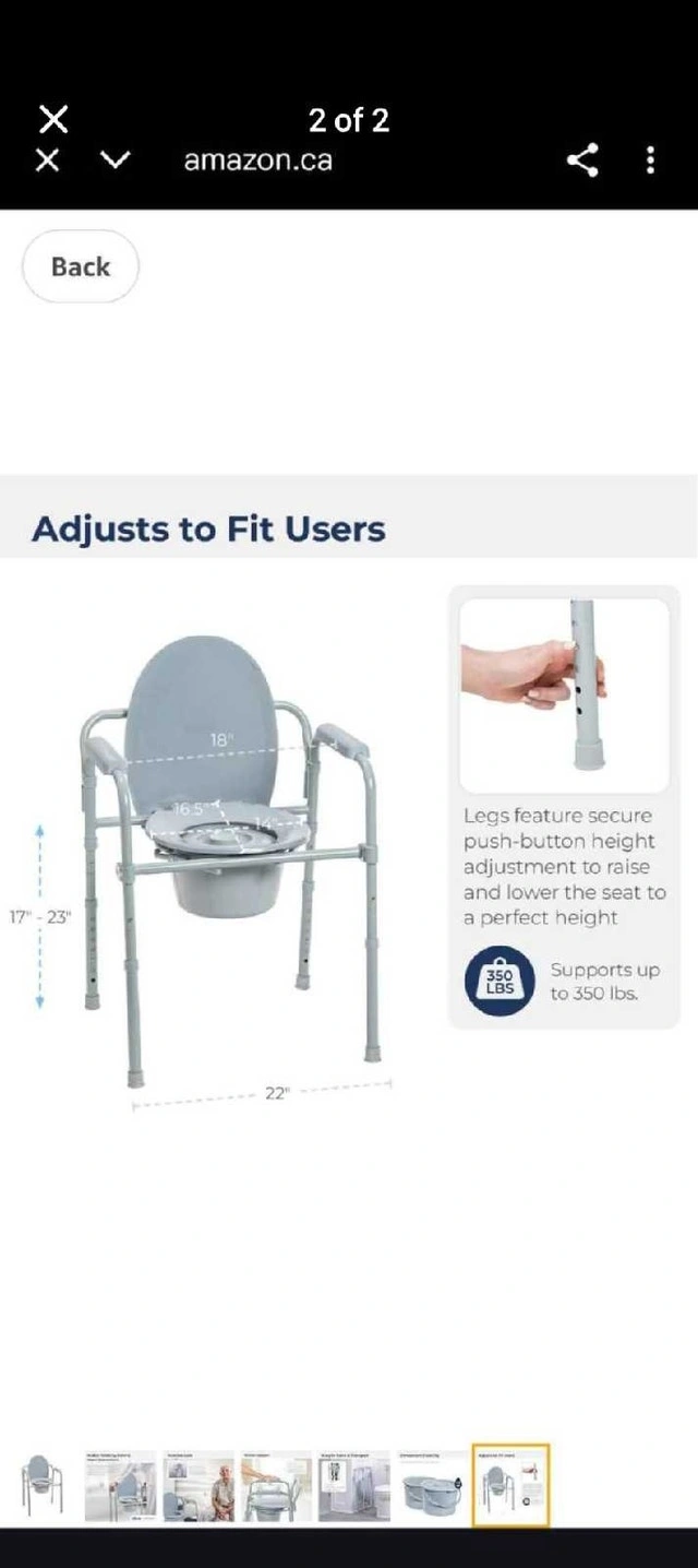 This Drive Medical bariatric commode chair is designed for toilet use with arms, offering support and stability. It's in new condition providing a practical and safe bathroom aid. It features adjustable legs and a sturdy frame, accommodating up to 350 lbs. Here are some additional specifications: