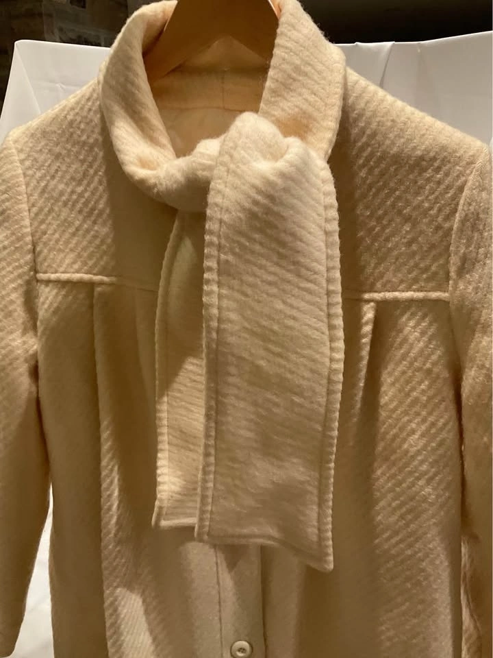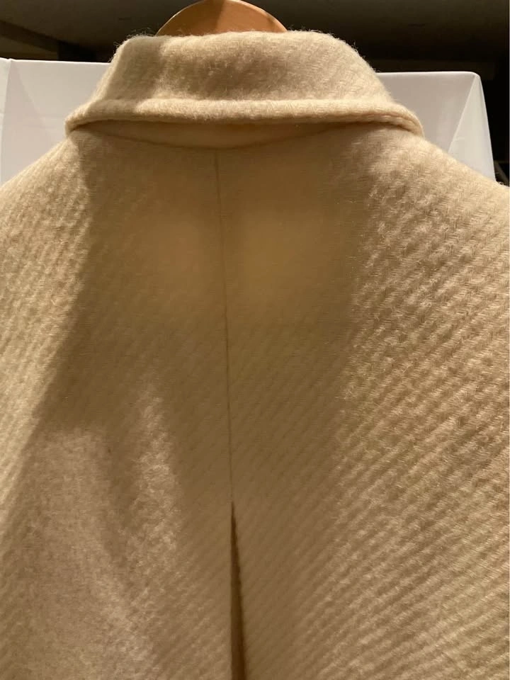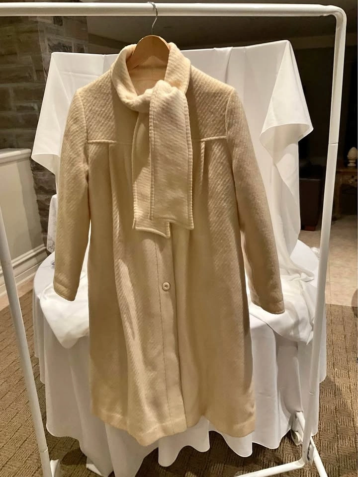 Vintage Holt Renfrew Paris Swing Coat. 100% Virgin Wool with a beautiful subtle pattern. Winter White - stunning coat! Shoulder-to-shoulder: 16”. Length: 40”. Tags in coat, cannot read size - fits like a Medium. Coat needs to be dry cleaned, it is priced accordingly. Smoke & Pet Free Home. Cash Only - Richmond Hill / Bathurst & King Rd.