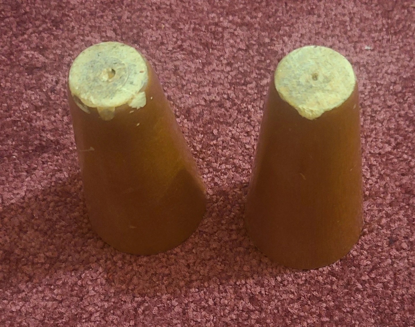 Set of two tapered wooden furniture legs. They are brown and appear to be solid wood. Great for replacing old legs or for a DIY furniture project!