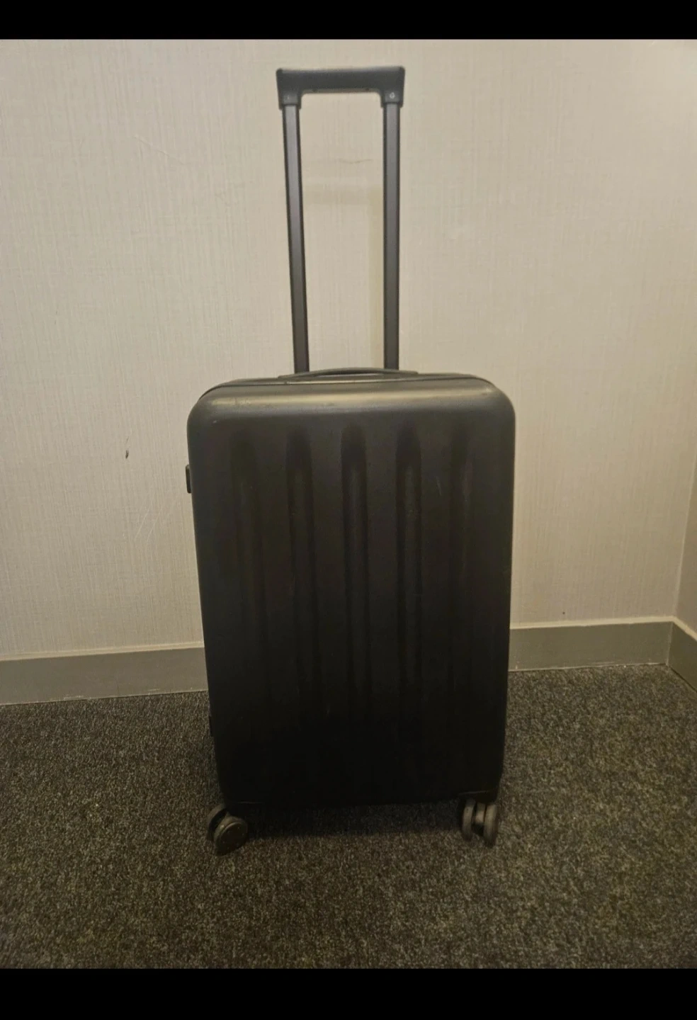 Black Xiaomi Mi 90 Point 20-inch Hardshell carry-on spinner suitcase. Midnight Black. It's lightweight and carry-on compliant. Features include 4 360° silent spinner wheels and a 4-step adjustable telescopic handle. TSA-approved locks are also included for security.
