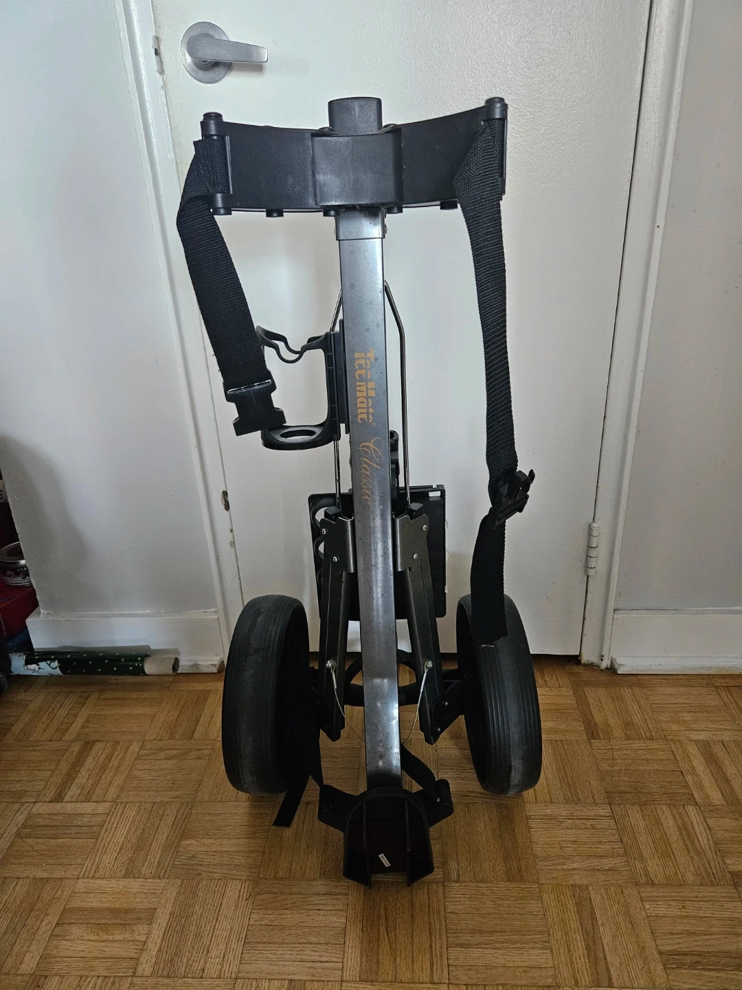This Clicgear "Classic" golf push cart makes getting around the course a breeze. It's made with durable metal and plastic components. A simple push cart to carry your golf bag on the links!