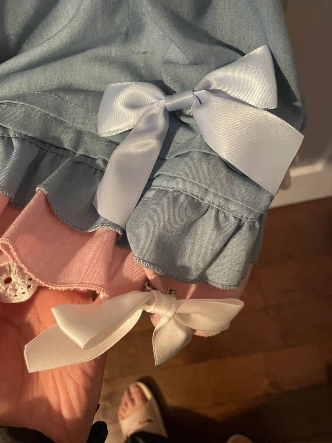 Blue jsk dress plus pink shirt