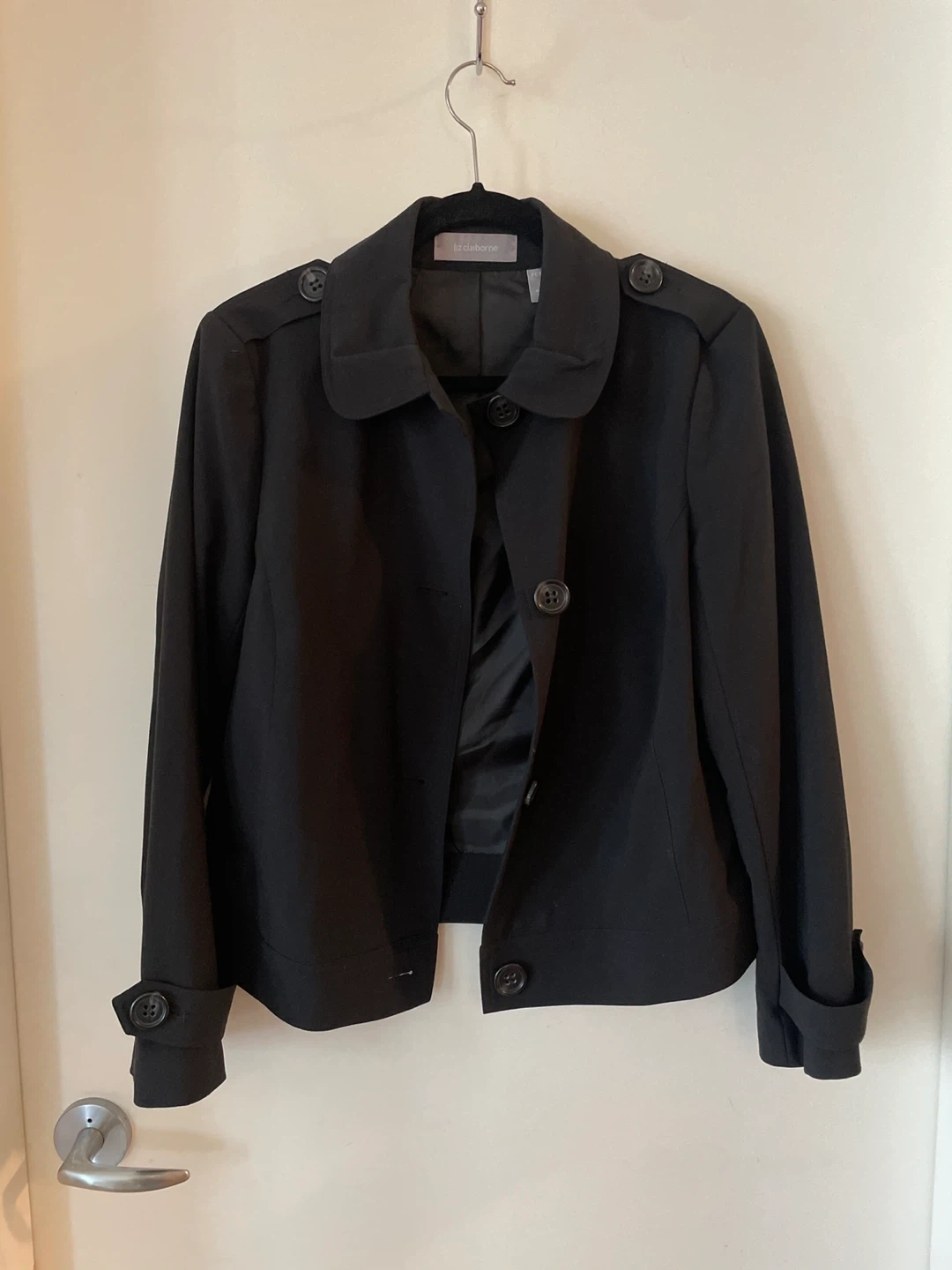 Selling a Liz Claiborne black jacket in petite size 10. It's in great condition and perfect for layering or wearing on its own. A stylish addition to any wardrobe!