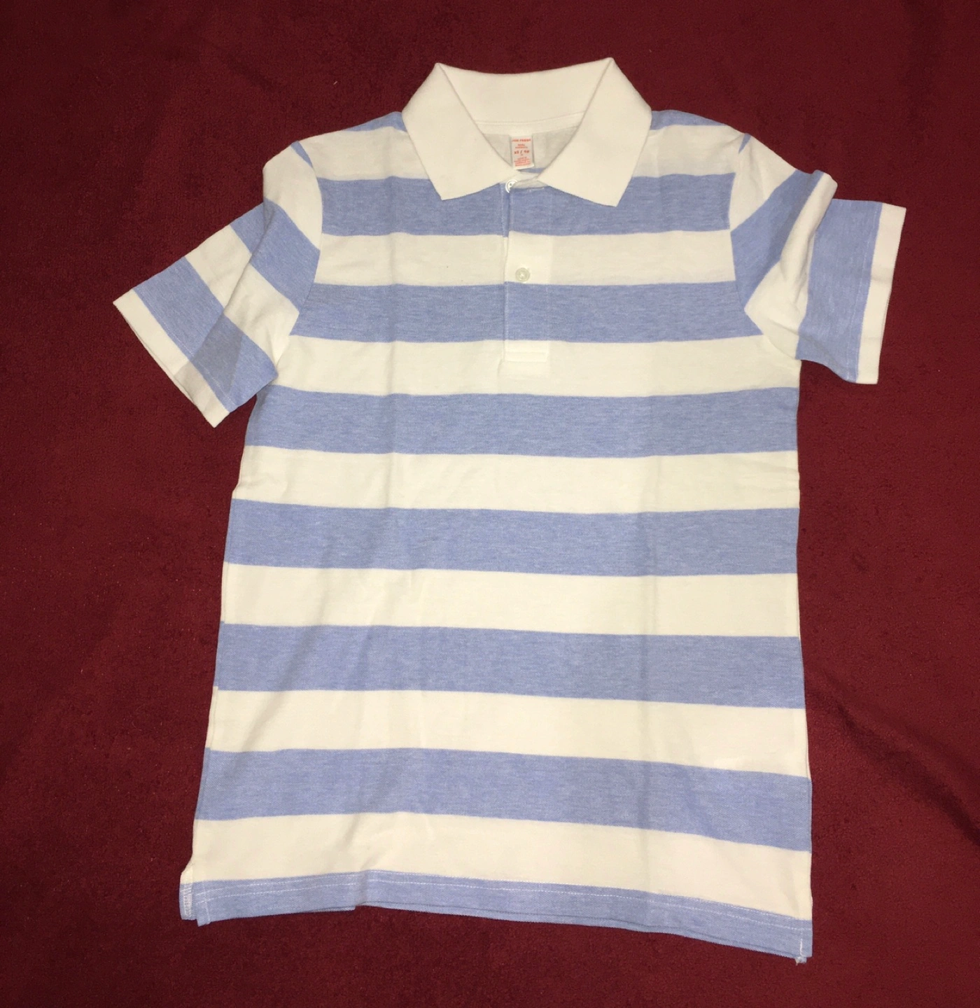 Boys Joe Fresh polo shirt with blue and white stripes. It's a size XL.