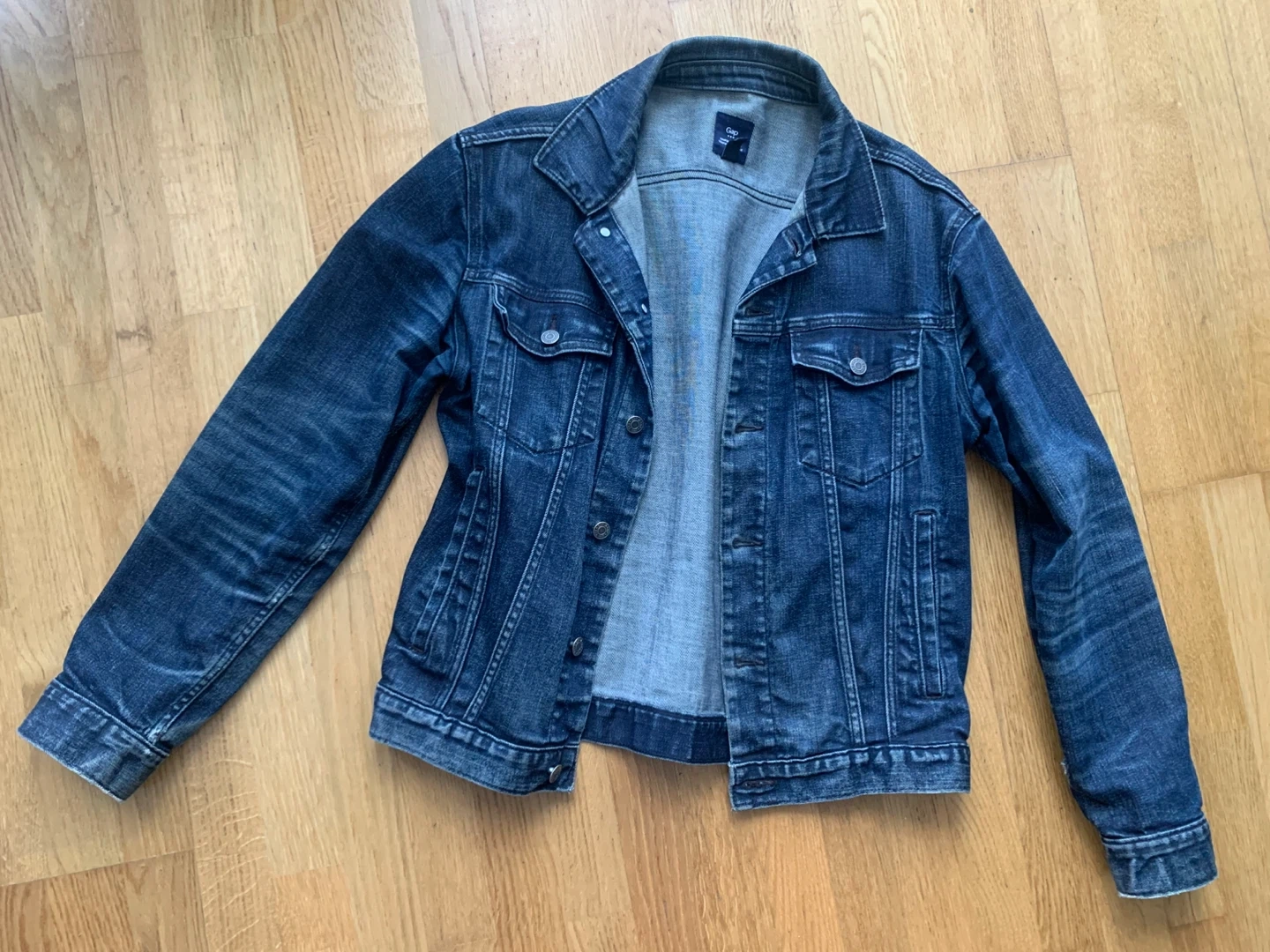 Selling a classic denim jacket from GAP! It's a timeless piece that can be dressed up or down. Perfect for layering during those cooler Canadian evenings. Grab this wardrobe essential!