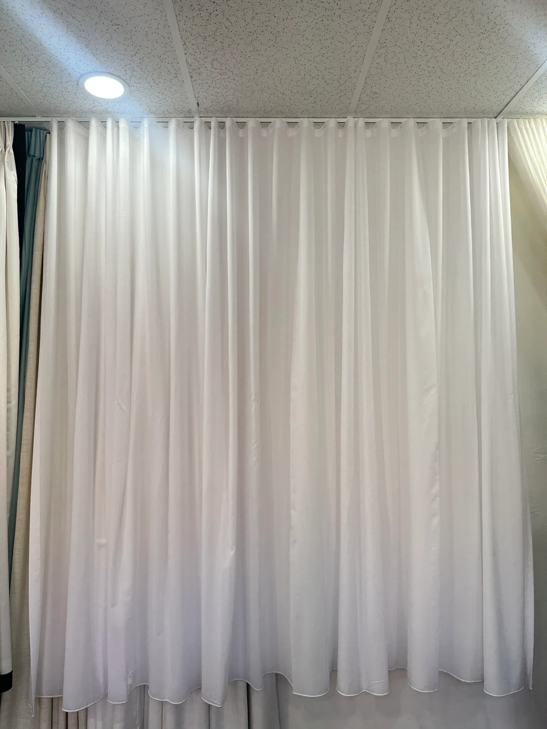 Sheer white curtains add a soft, airy touch to any room. They're lightweight and allow natural light to filter through.