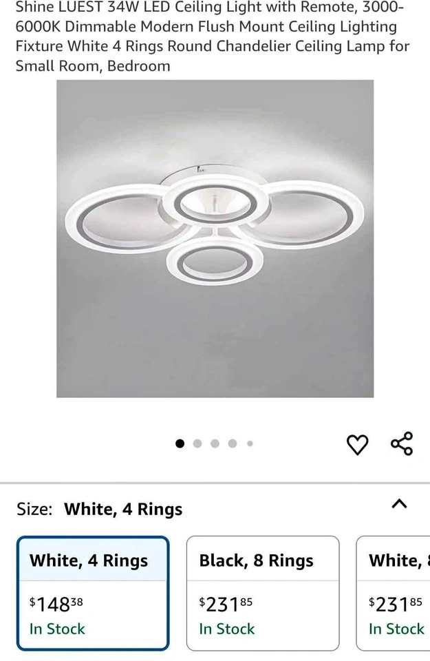 Shine LUEST 34W LED Ceiling Light with Remote, 3000-6000K Dimmable Modern Flush Mount Ceiling Lighting Fixture White 4 Rings Round Chandelier Ceiling Lamp for Small Room, Bedroom Pick up Markham and Ellesmere. Thanks