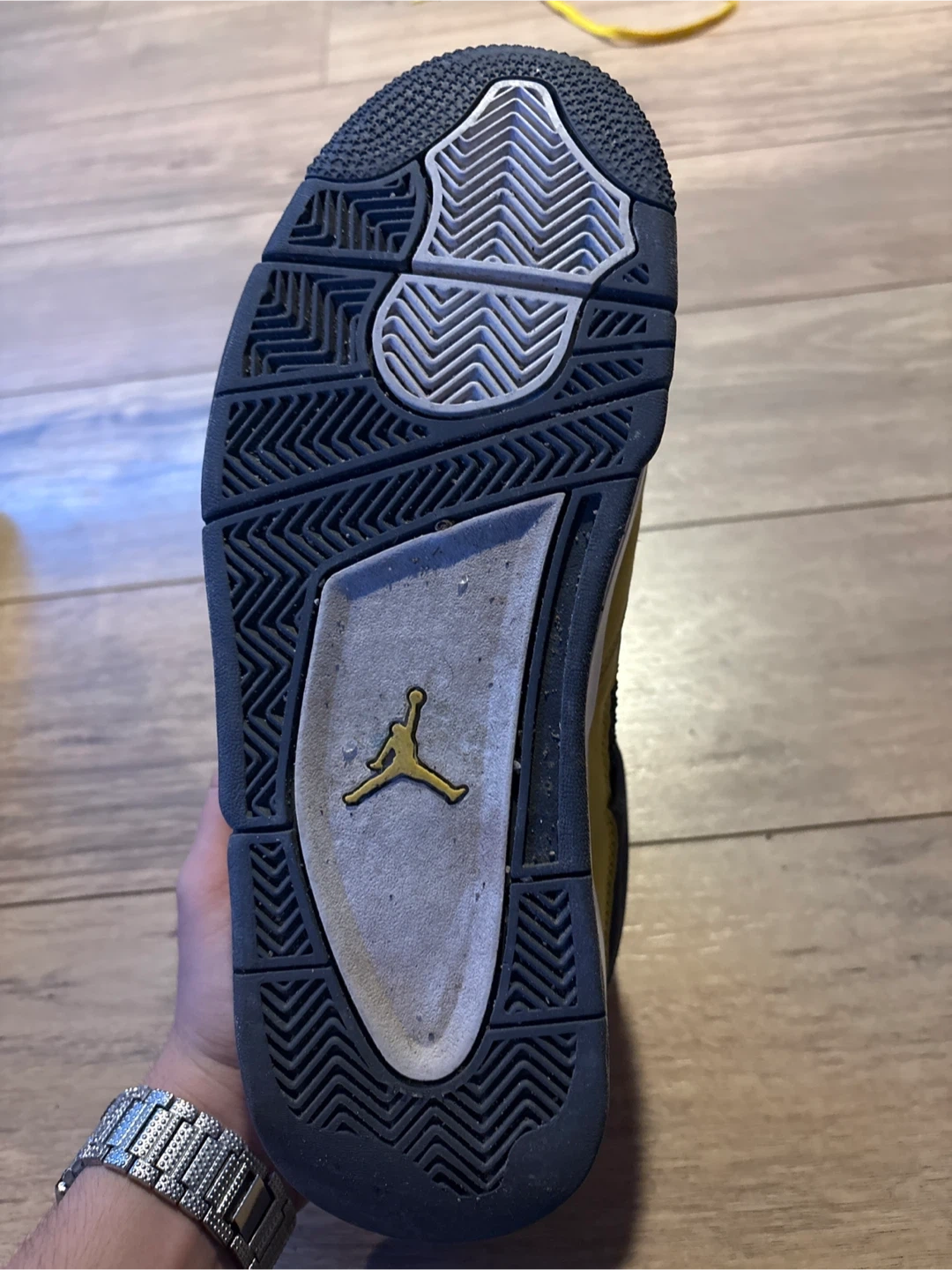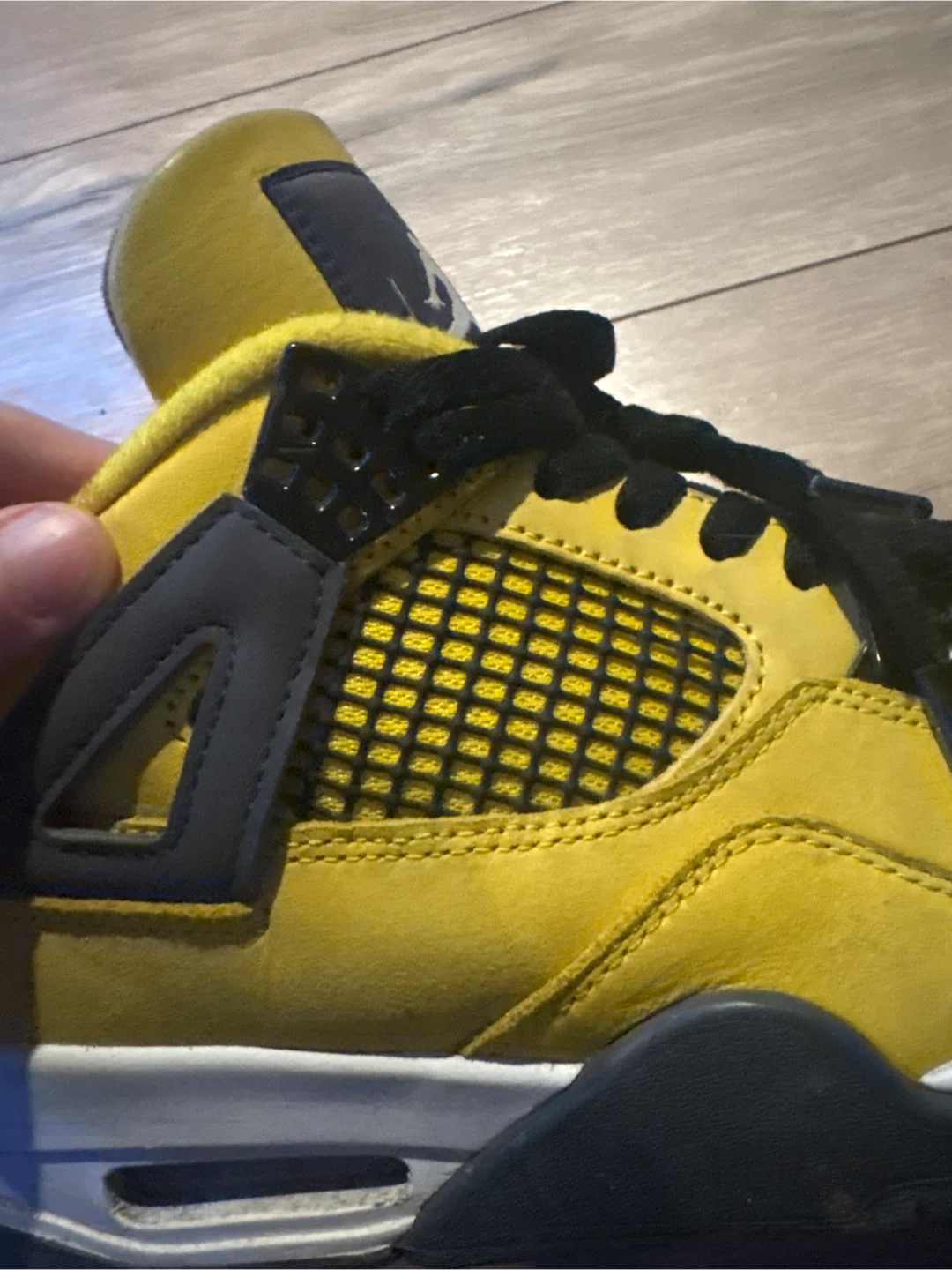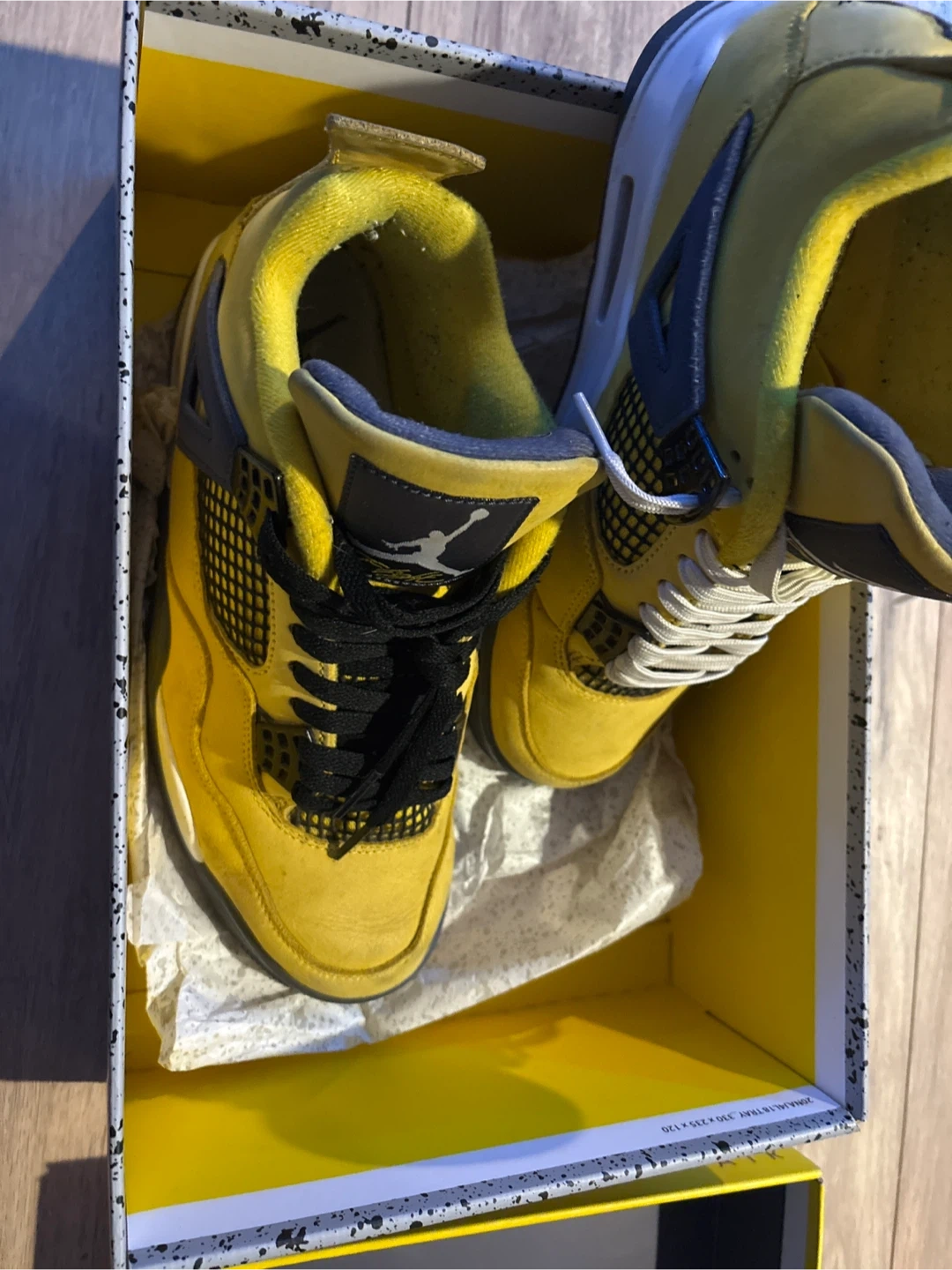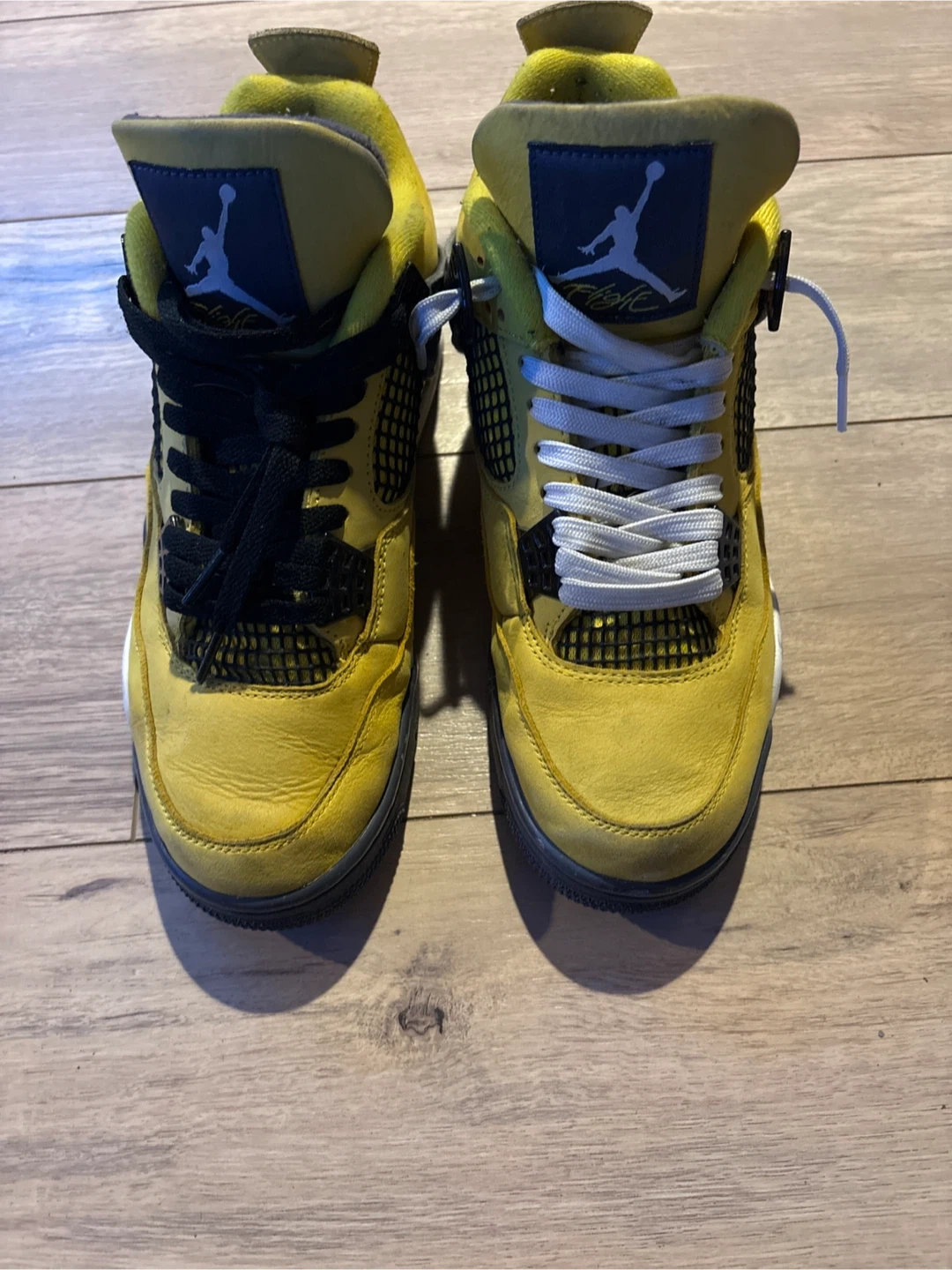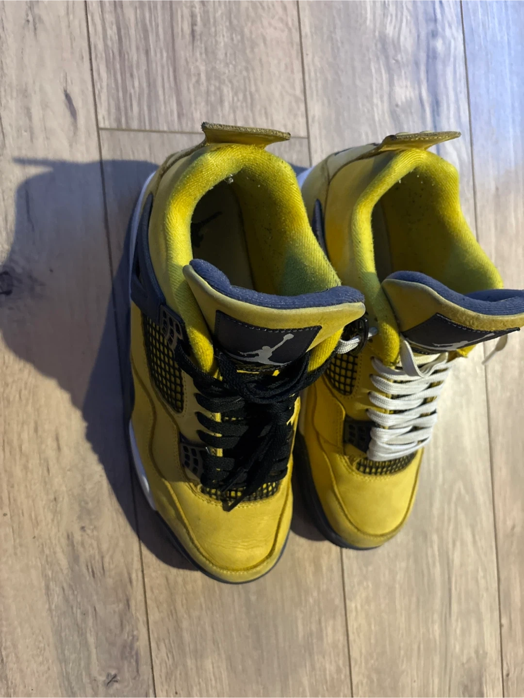 Selling a pair of Air Jordan 4 Retro "Lightning" sneakers in yellow. These shoes come with the original box. Size 8.5 US Men's.