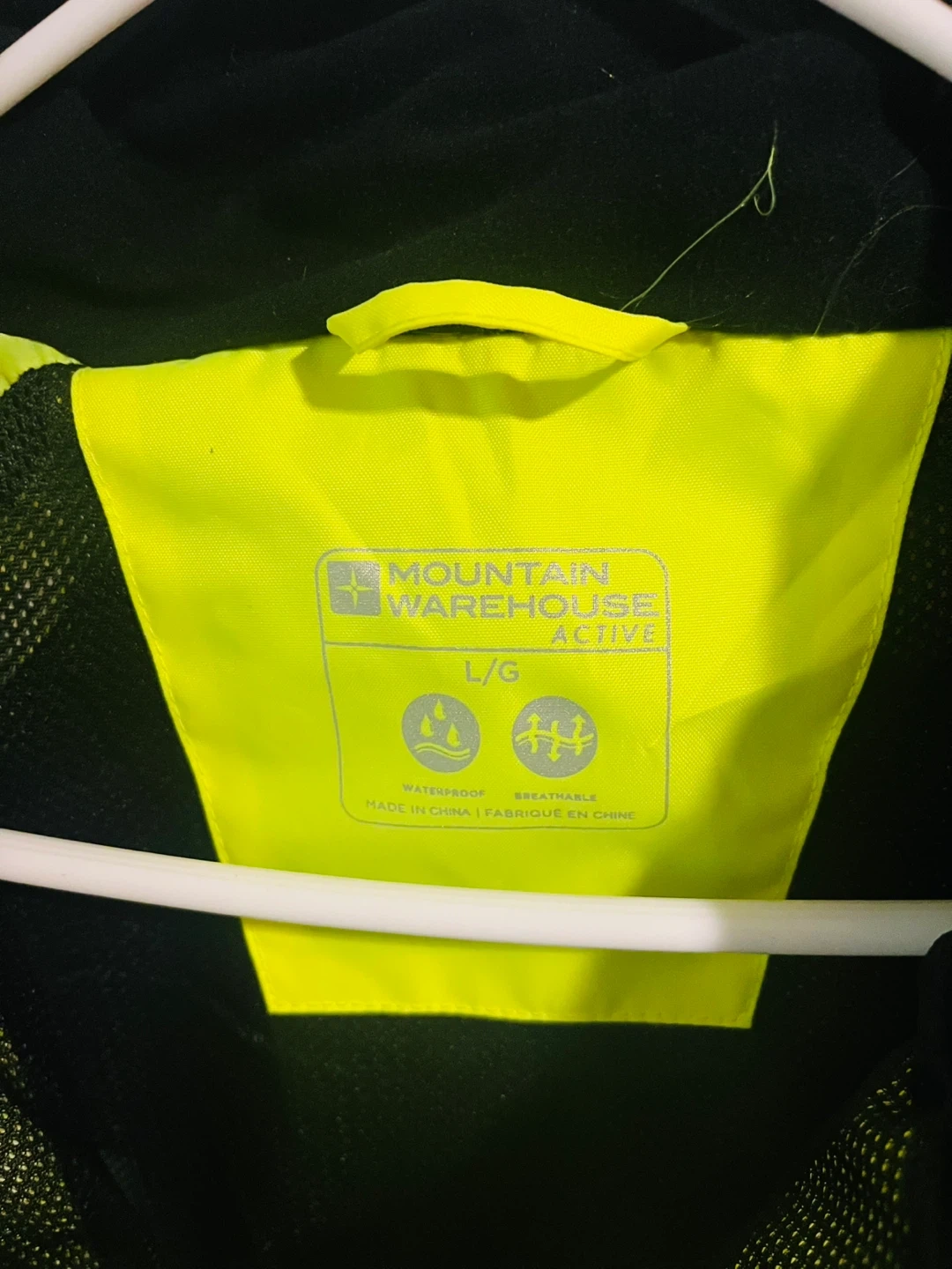 Mountain Warehouse Active Jacket, size L. Never worn and purchased in September 2025. Bright yellow, waterproof and breathable. Great for hiking, running or any outdoor activity. In perfect condition.