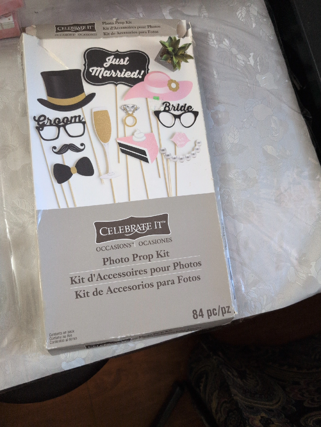 Selling a Celebrate It photo prop kit! This kit includes 84 pieces of fun accessories for photos, perfect for occasions. Get ready to make some memories!