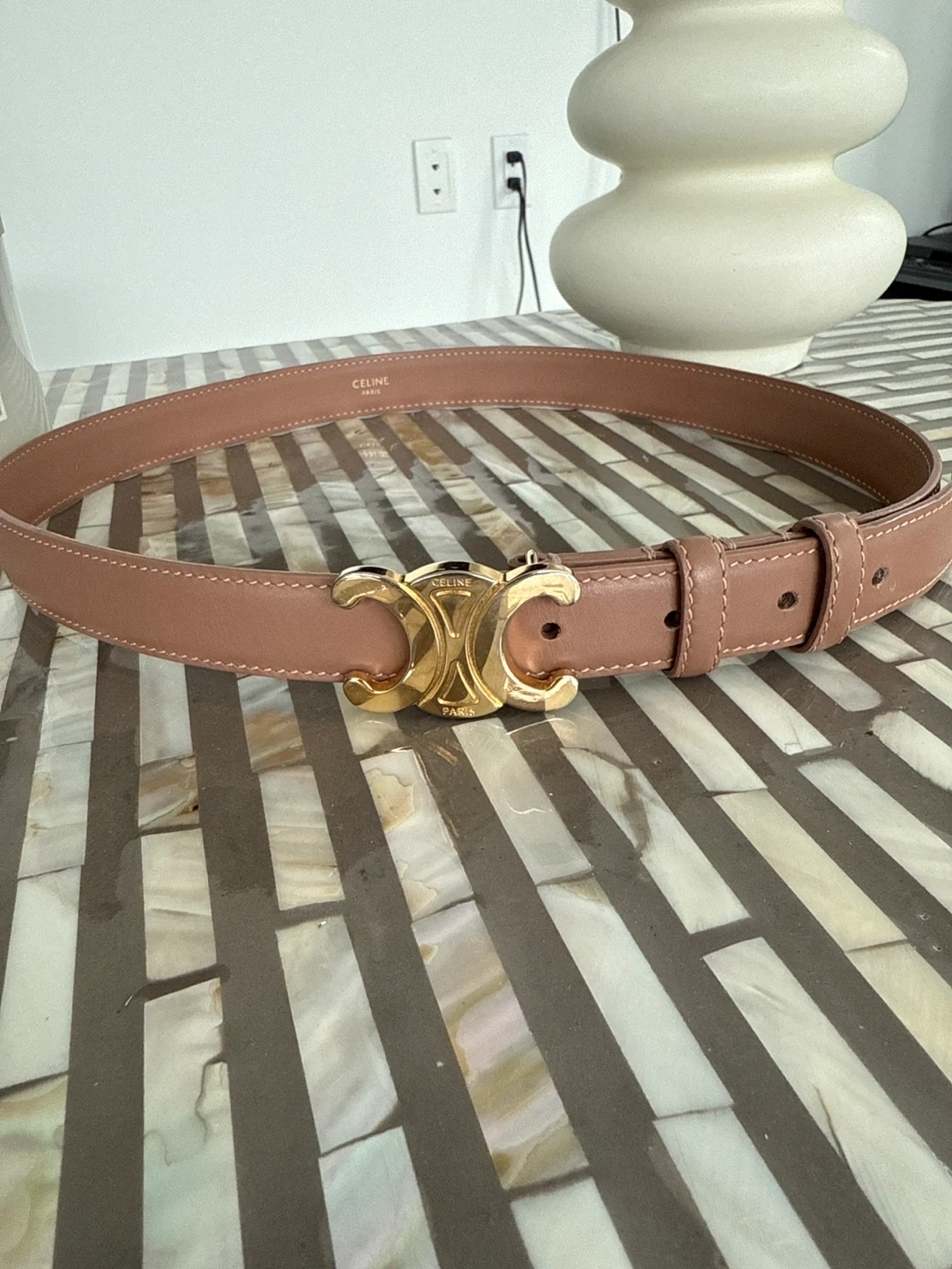 Selling a beautiful Celine belt! It's a lovely light brown leather with a gold buckle. The size is 80. Made in Italy
