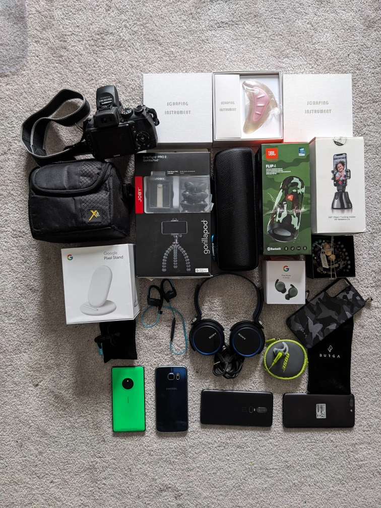 Pick up in Oakville | E-transfer preferred Cameras & Accessories: - Fujifilm HS30EXR (case, battery, and charger) – Used, in great condition – $230 Audio & Headphones: - Anker SoundBuds Bluetooth Earphones – Lightly used, good condition – $50 - Jabra Bluetooth Earphones – Lightly used, good condition – $35 - Google Pixel Buds A-Series (Green) – Lightly used, good condition – $75 - Sony MDR-XB450AP Extra Bass Wired Headphones – Used, working condition – $30 - JBL Flip 4 Bluetooth Speaker (Camouflage) + Case – Lightly used, great condition – $80 Phones & Accessories: - Samsung Galaxy S6 – Used, wiped, in great working condition – $130 - Nokia Lumia 830 – Used, wiped, in great working condition – $300 - OnePlus 6 – Used, wiped, in great working condition – $140 - OnePlus 5 – Used, wiped, in great working condition – $140 - Google Pixel Stand (Wireless Charger, 1st Gen) – Lightly used, good condition – $45 - Burga Phone Case (Camo) for Samsung Galaxy S22 Plus – New – $35 Other Electronics & Gadgets: - JOBY GorillaPod 3K Pro Kit (Tripod for Cameras/Phones) – New, sealed – $75 - 360° Smart Tracking Phone Holder (AI Auto Face Tracking) – New in box – $30 Beauty & Jewelry: - LED Face Massager (Scraping Instrument, Gua Sha – 2 Pink, 1 Blue) – New – $20 each - Handmade Crystal Bracelets (Various Gemstones) – New – $15 each - Rachel Zoe Silver Necklace with Clover Pendant – New in box – $20 Total for Everything: $1100 Bundle pricing available – message for details!
