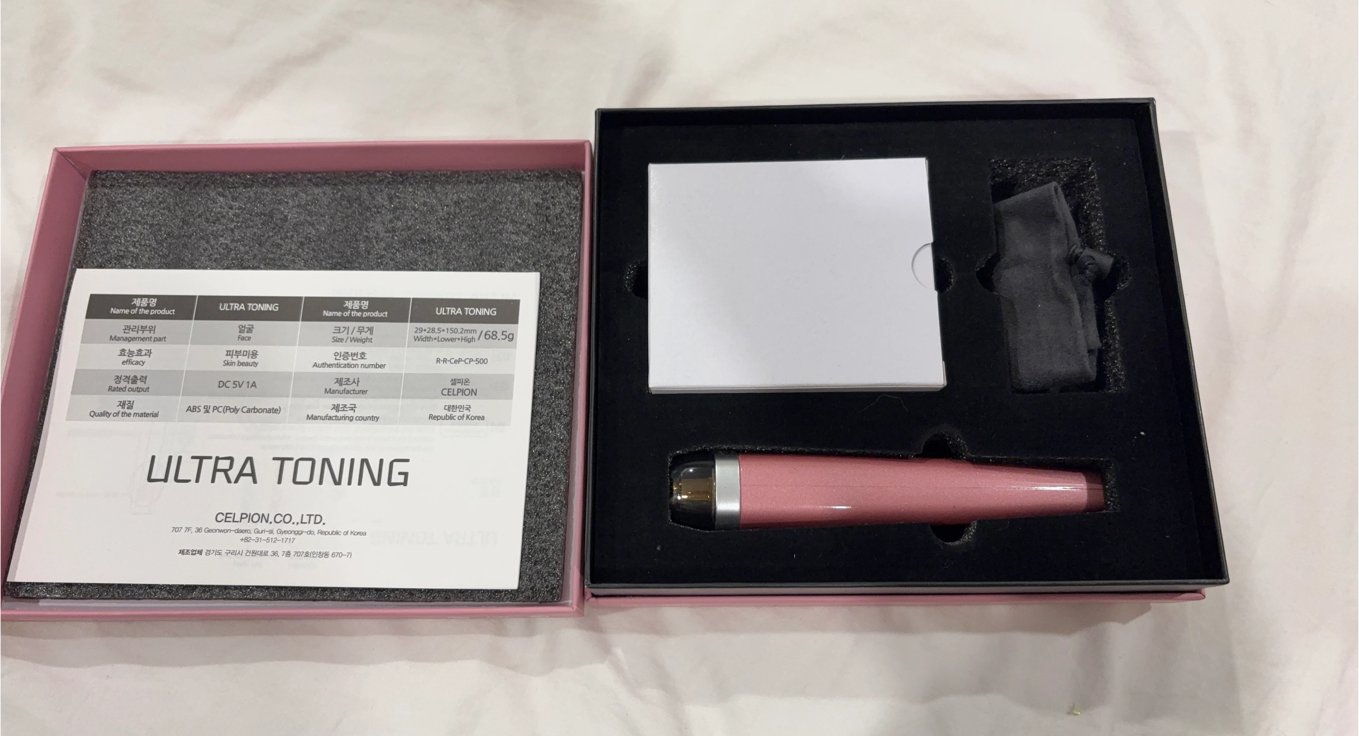 I'm selling a CELPION Ultra Toning device for skin beauty and face management. It comes in its original box and includes all components. The size/weight is 29*28.5*150.2mm / 68.5g. The material is ABS and PC (Poly Carbonate) Brand New