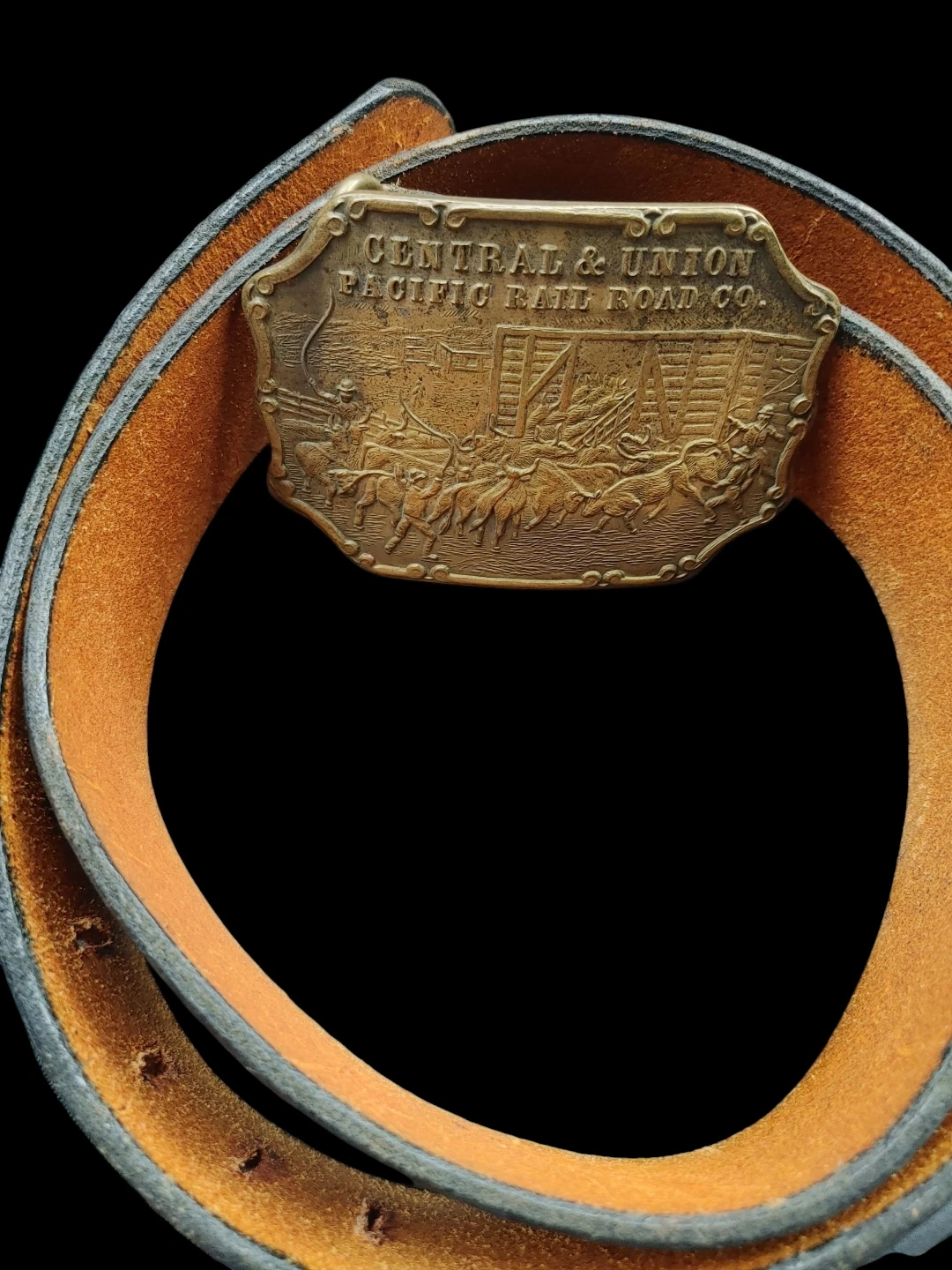 29Selling a belt with a unique Central & Union Pacific Railroad Co buckle! The buckle has a detailed design. The belt is in good condition and ready for a new home