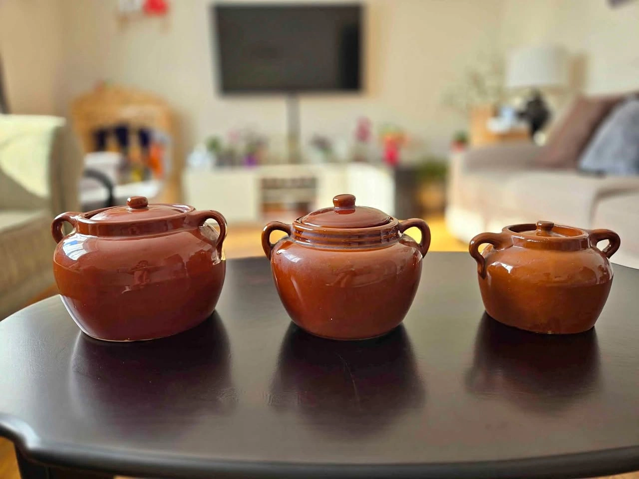 60Set of 3 Ceramic Bean Pots 🍲✨ Beautiful brown glazed ceramic pots with lids and side handles. They’re heavy, durable, and perfect for baking, serving, or as kitchen décor. 💰 Price: $45 for the set ✅ Excellent condition 🏡 Pickup only ✅ If the ad is up, it’s still available.