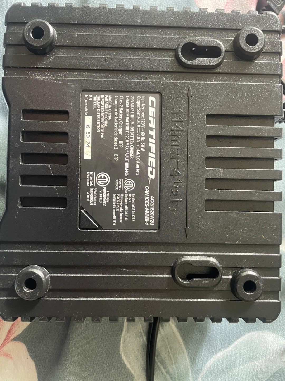 Selling a Certified 20V MAX Lithium Battery Charger. It's in good working condition and ready to power your tools!